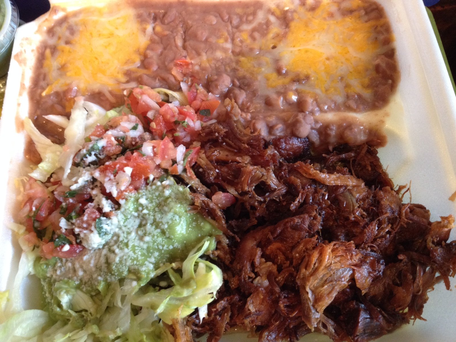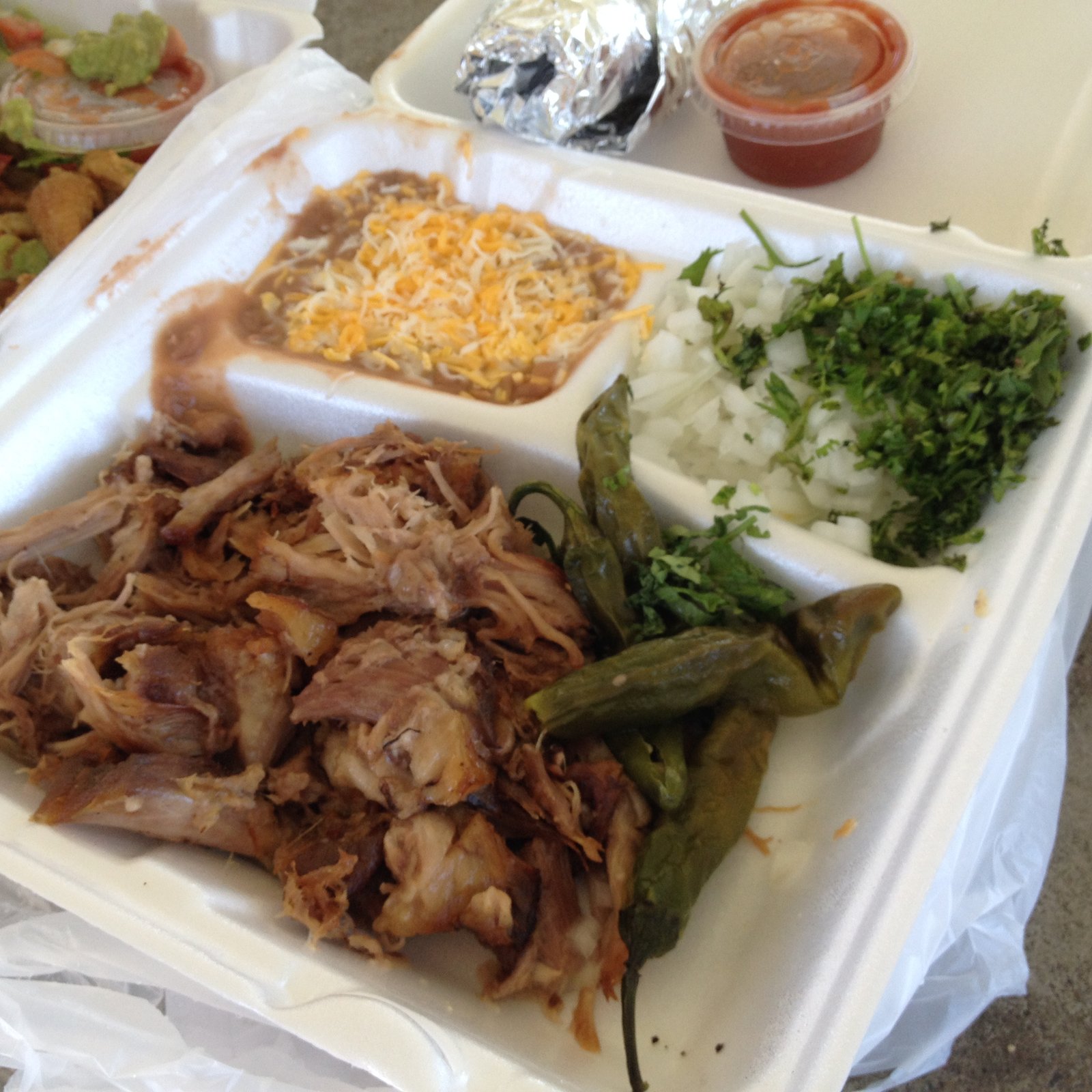 Order and watch your meal being prepared.  Grab a beverage or two.  You'll pay at the cash register at the door.  There is *no* seating.IMG_5751Usually, I'll get a quart of birria to go, but on this day, I asked for it as a combination plate ($6.49).  I think it's the best birria, stewed until the beef is tender and with spicy, deep and complex flavors.  The chef is always proud when I tell him it is my favorite.IMG_5750Here's a carnitas plate ($6.49) with no rice and all the sides that come with it.  There is plenty here (you get six corn tortillas and there's always more meat than small tacos I make with the ingredients).IMG_9714The chicharrones guisados  (stewed fried pork rinds in green sauce) made here is also one of the best.  I asked for it to be made into two tacos.  It's not listed on the menu, but I was only charged $3 for these.IMG_9715Here's another plate of carnitas from Krist.  Different cooks, different results.  All good.