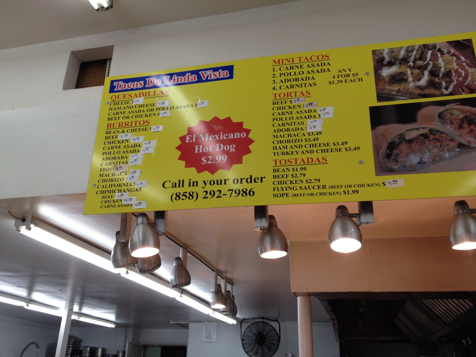 On the West Side of Linda Vista Road, next to the Jack In The Box (at Fulton Street)…IMG_5749Note the signage on the building to your left …rotisserie chicken, birria, carnitas.  There is a menu on both of those open doors.  Just walk inside.IMG_5747IMG_5746Sure, there's a whole wall of liquor as well as a refrigerator of cold beer and plenty of non-alcoholic beverages.  There's also a small display case of Mexican baked sweets, as well as fruits and vegetables, a meat counter and a few aisles of various sundries.  All the way in the back, you'll see-IMG_5738IMG_5739The menus up high.IMG_5737_2IMG_5736_2IMG_9709The steam trays in front of you.IMG_9706IMG_5745_2Condiments, sides and the stove (for warming tortillas) along the side.