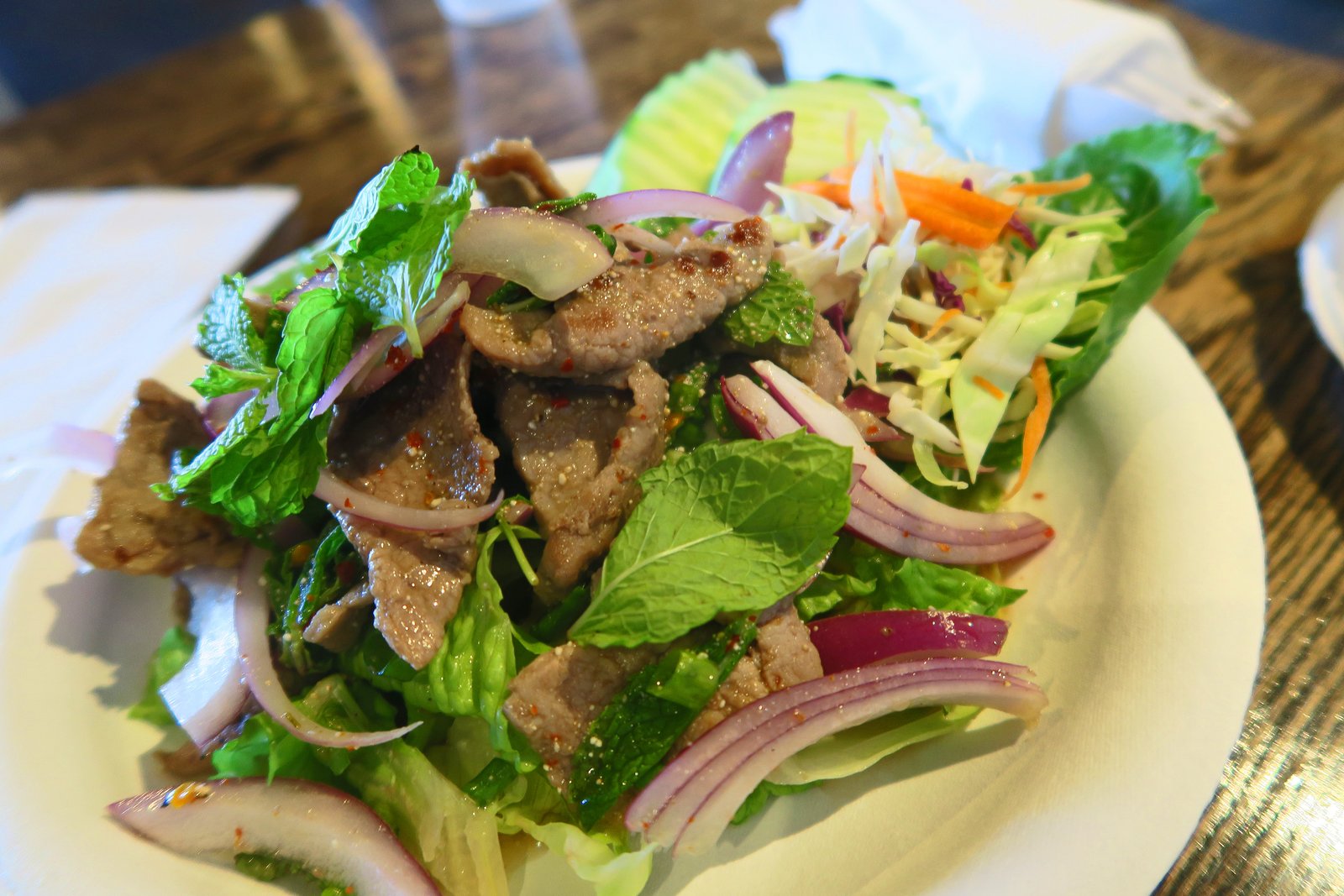 I was happy when they didn't ask us for a "heat level". not so happy when we got "gringo'd" Not enough of that nutty rice powder, not enough citrus, too sweet, the beef was a bit too tough, no pungency from garlic, and kind of bland (really lacking in fish sauce) overall. I guess ok as a basic "salad" but not even close to what I make at home…..not that I'm expecting that.