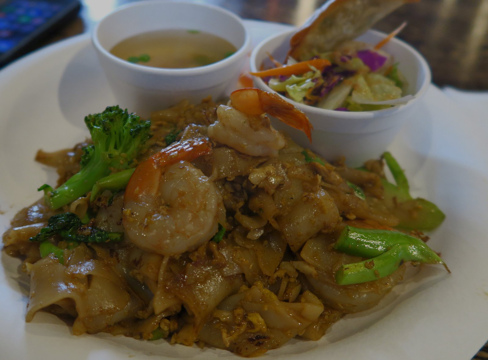 If you've been reading this blog for a while you know that my test of a Thai cooks stir fry skills is the simple Pad See Ew. At it's most simplest, rice noodles, soy sauce (light and dark), egg, Chinese Broccoli, garlic, and perhaps palm sugar. All the same ingredients. It's up to the cook to make it right. So how was this?