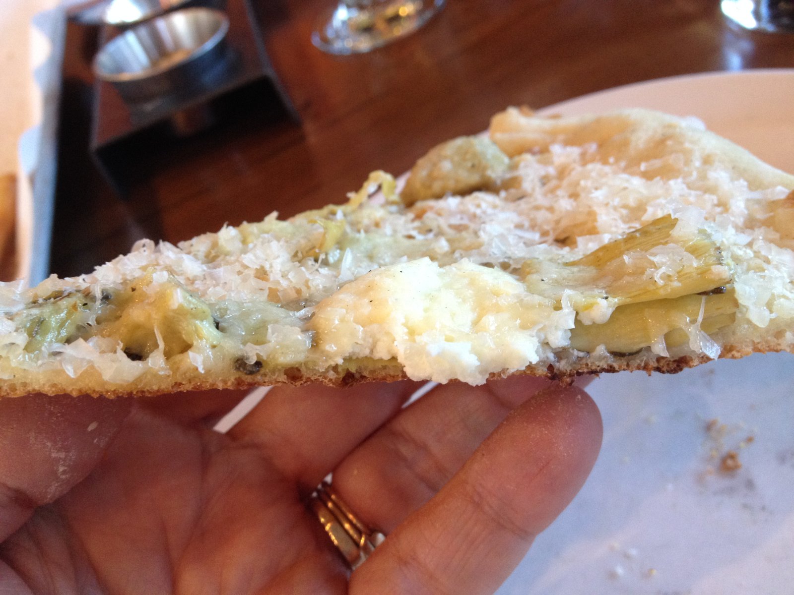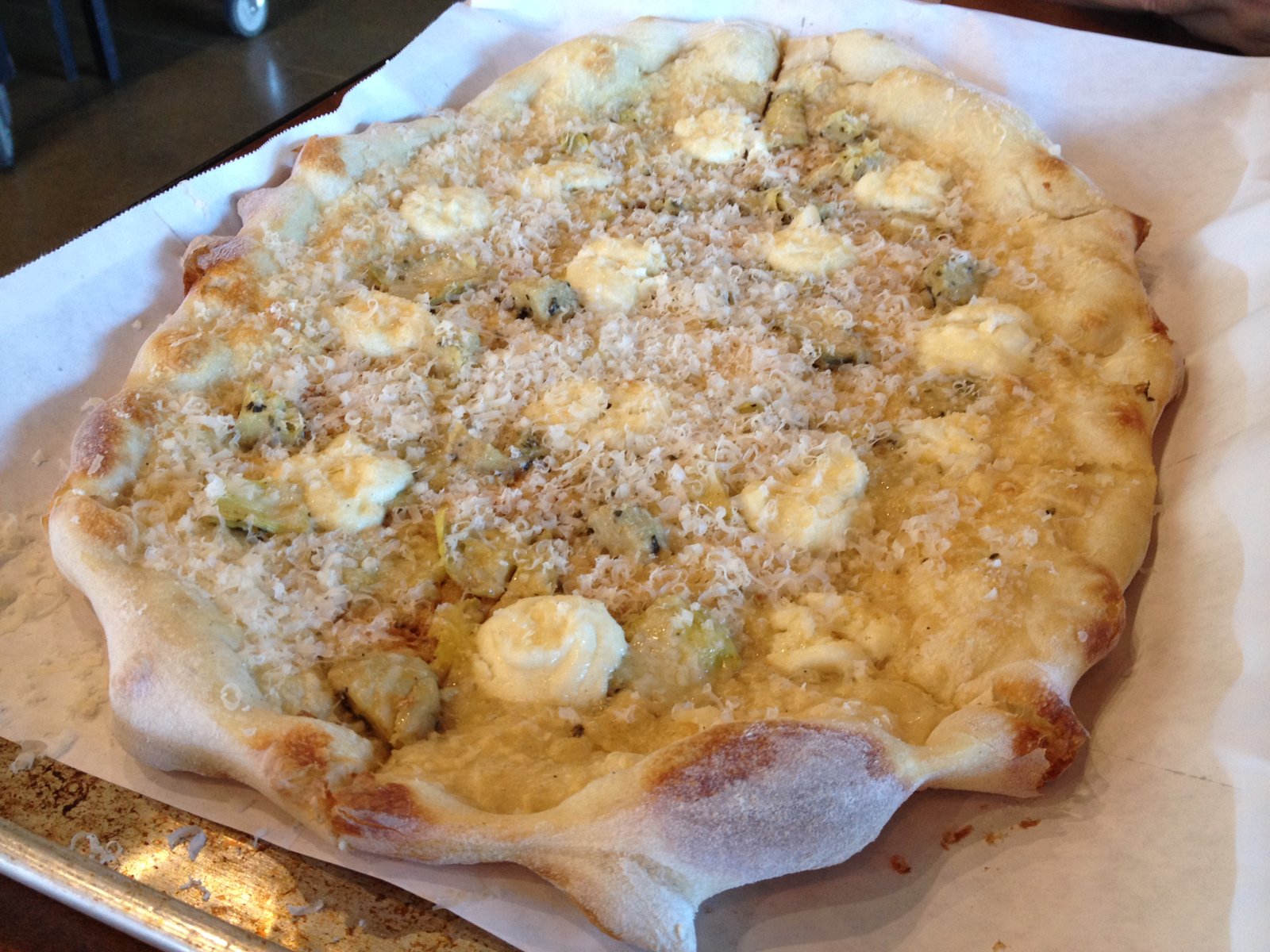 None of the preselected ingredient pies appealed to us, so we chose to 'Craft Your Own'. We chose a Small, White with parmesan/garlic/evoo ($10) then added Ricotta ($2) and artichokes ($2).