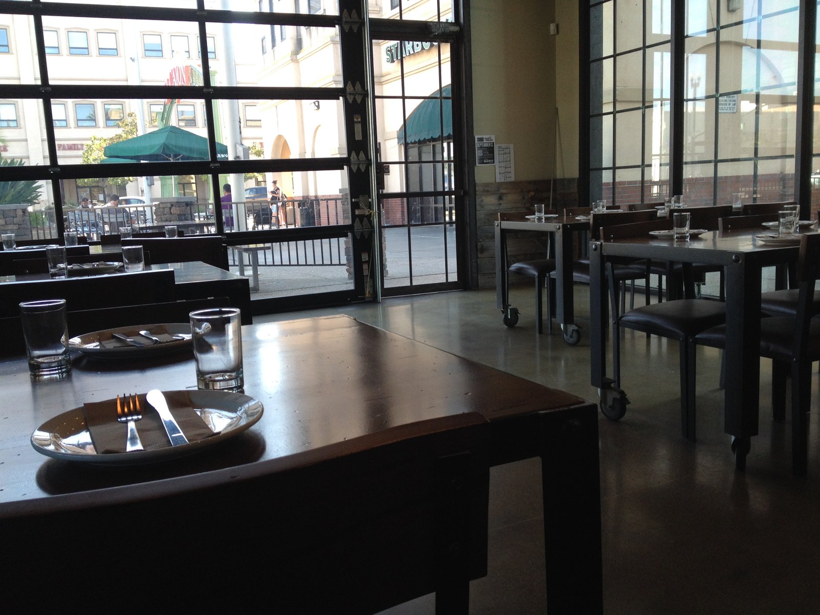 The Mister was here to try some of the house beers ($7 for an URBN flight) (of four): Saison (bright and light in flavor), Unite (a red Belgian rye, brewed in collaboration with Twisted Manzanita Brewery (located in Santee)), Brown (graham cracker with chocolate undertones) and Triple Brown (strong coffee notes). Each beer was unique and fresh in taste. We enjoyed all of our choices.