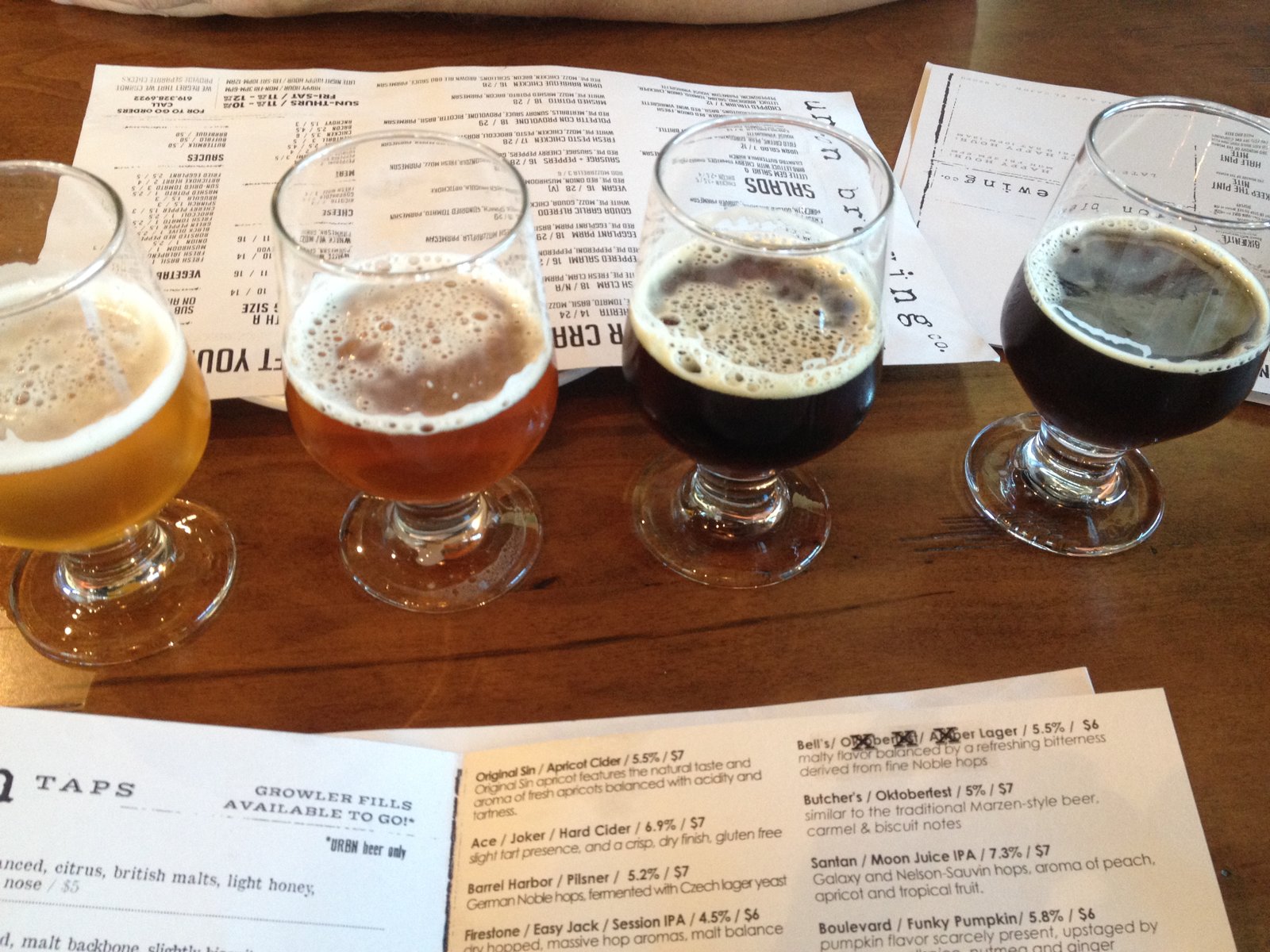 I like that they have flights. I would rather taste 4 or 5 small pours than commit to one huge mug. The pizzas are good here, especially the one with mashed potatoes. We have only been to the North Park loation.