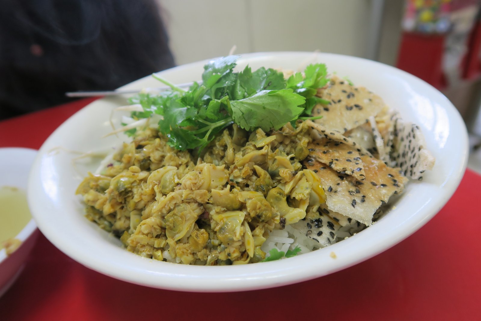 At least the Missus's Hen Xuc Com – spicy baby clams over rice was spot on. Very peppery a bit spicy, with nice savory tones.