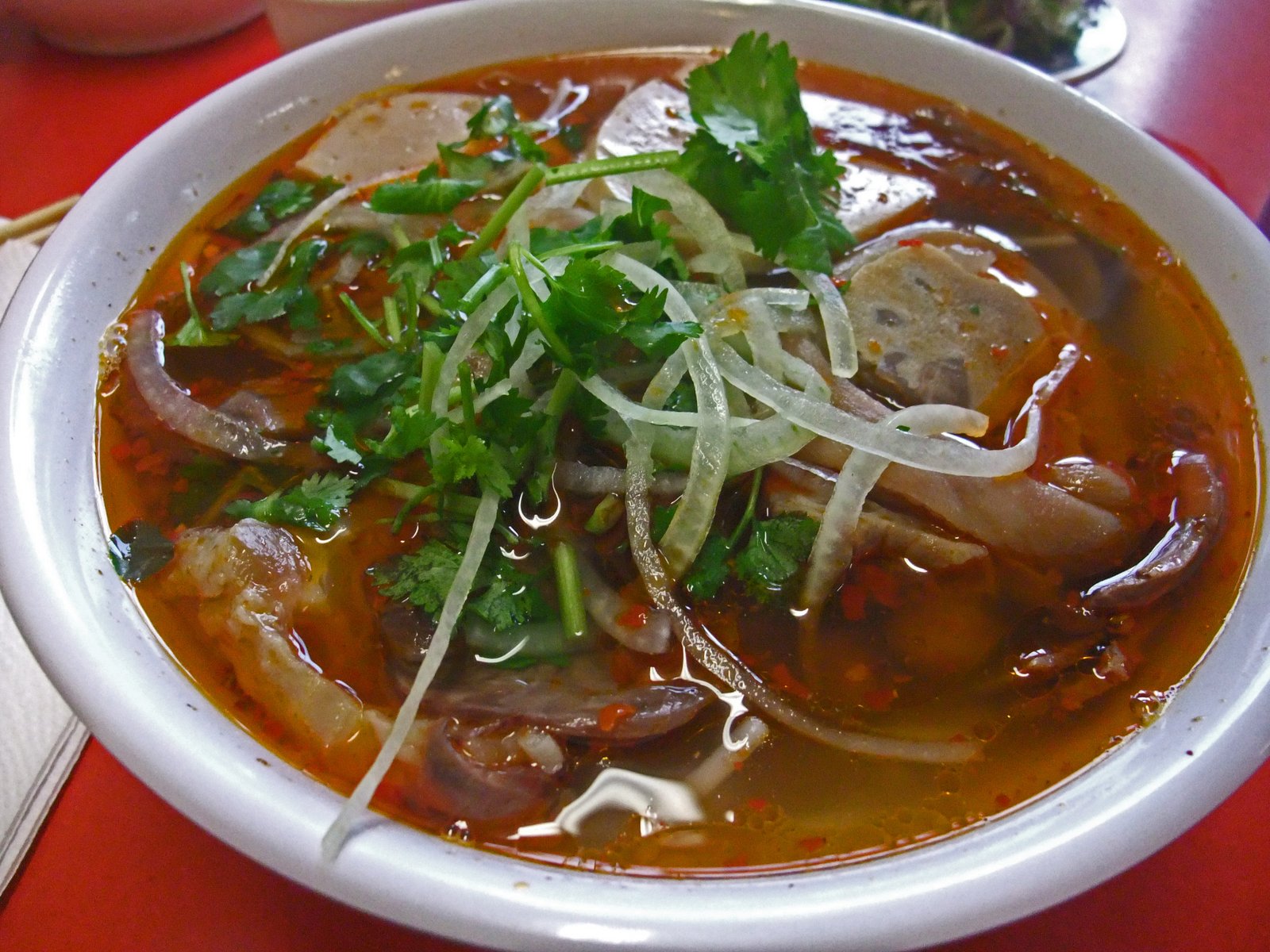 The service was odd, we got the wrong order, and my bowl of Bun Bo Hue was waiting….sitting on our table because they forgot to bring the greens. And my Bun Bo Hue looked wrong and even smelled a bit different as well.