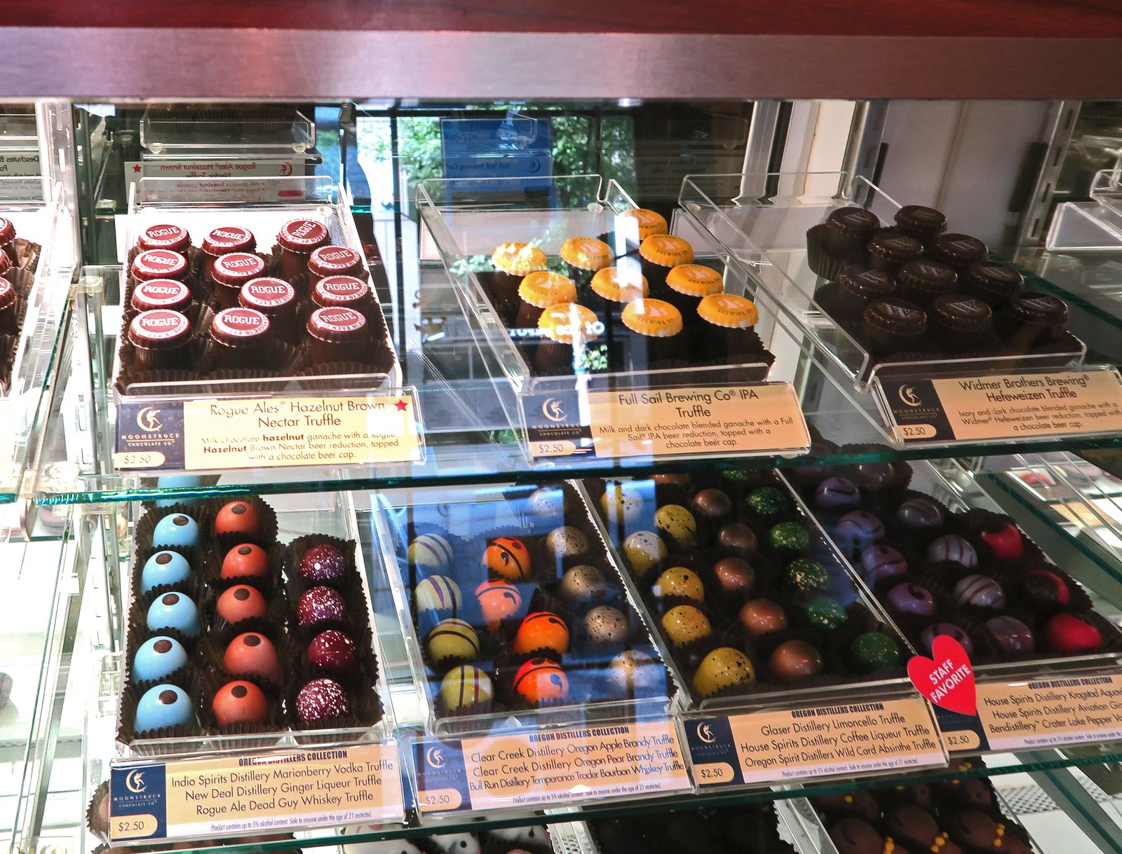 We entered the tiny shop so the Missus could add to Her collection of confections. The woman manning the counter was very nice and we found the Oregon Craft Brewers collection to be quite interesting. I did have a taste of the Rogue Hazelnut Brown, which was really, really, good.