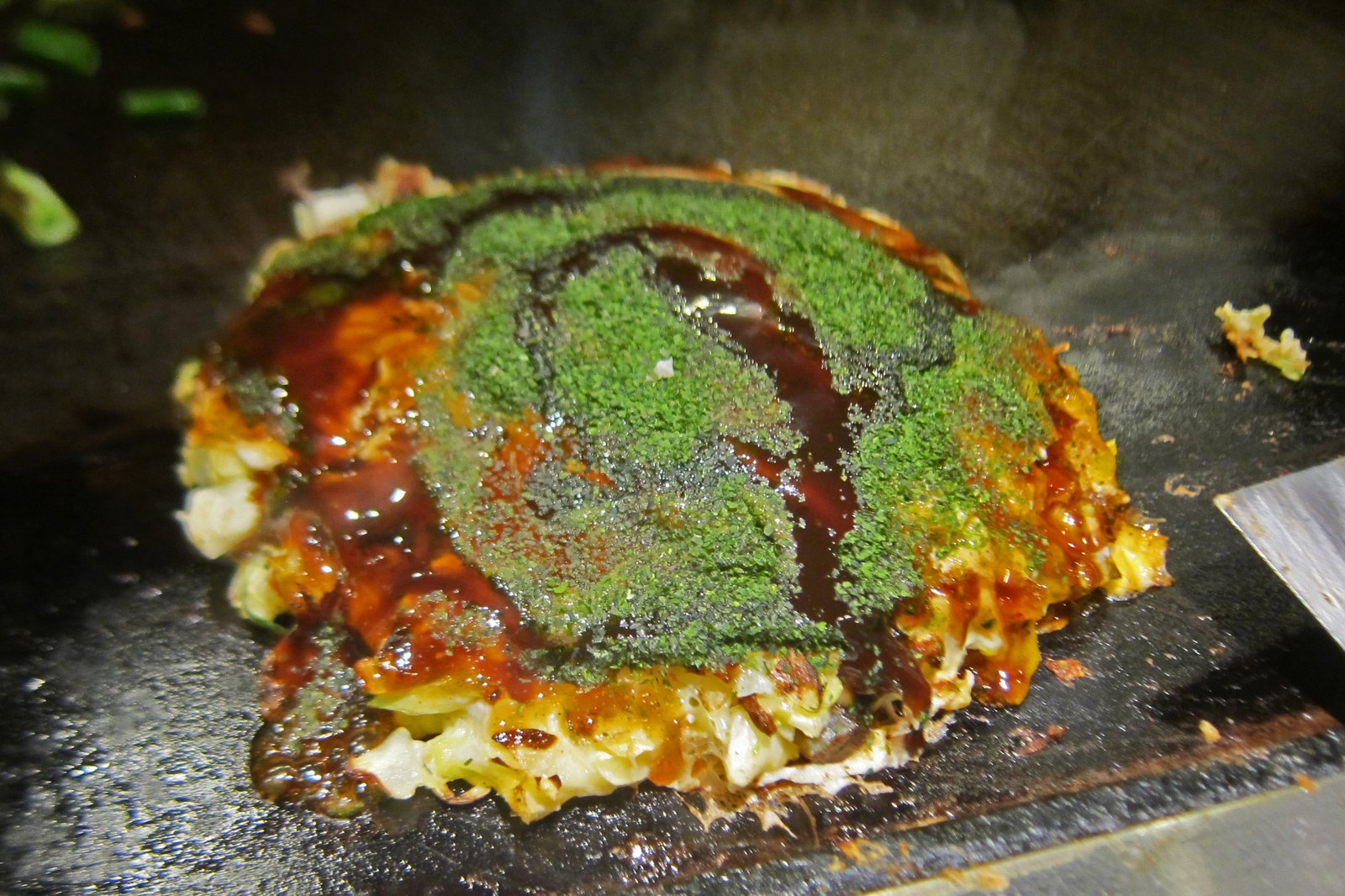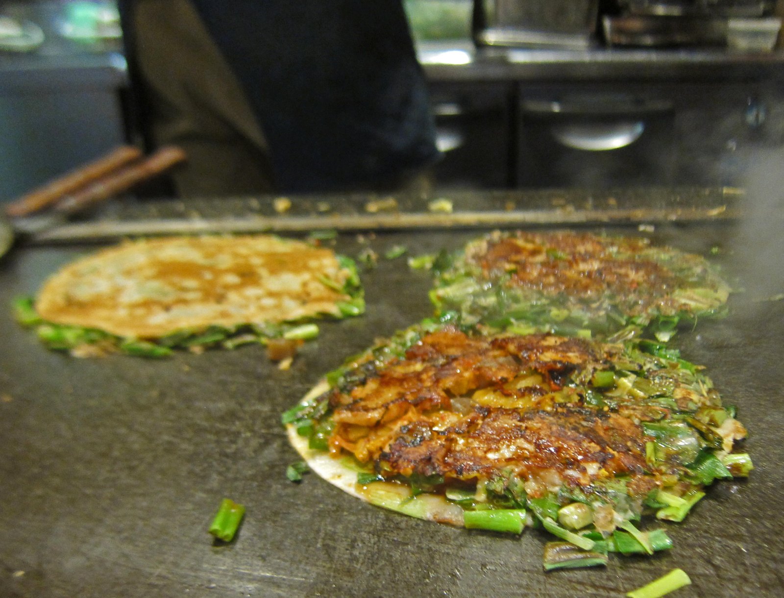 We had ordered the "Popular Set", which included three mini (though not so small) okonomiyaki; a yamaimoyaki, "mizunoyaki", and a negi yaki.