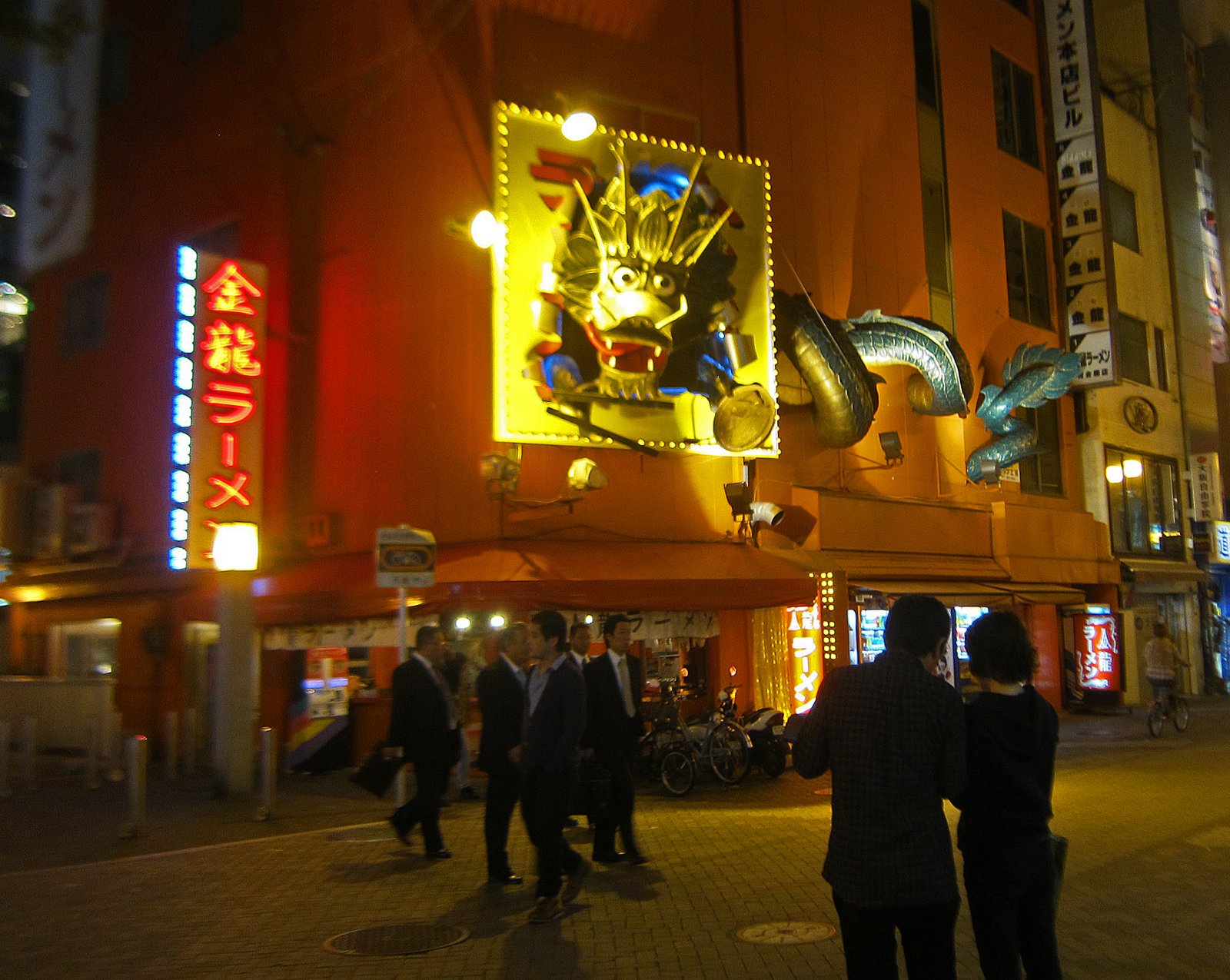 After dinner we walked around the area……checking out the bright lights. Just walking up and down the streets is entertainment itself. As the sun set, we could see the Salarymen headed for drinks, dinner, and possibly a long evening. This was fun…..totally different from the just as bright, but quite orderly and quiet Tokyo. Folks were out having a good time laughing and carrying on.