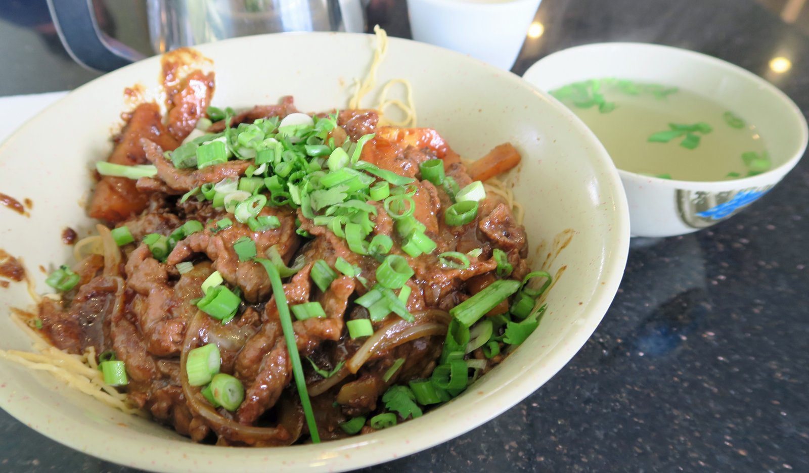 My usual here; the Beef sate Egg Noodle Soup "dry" – soup on the side. Still nicely priced at $6.45.