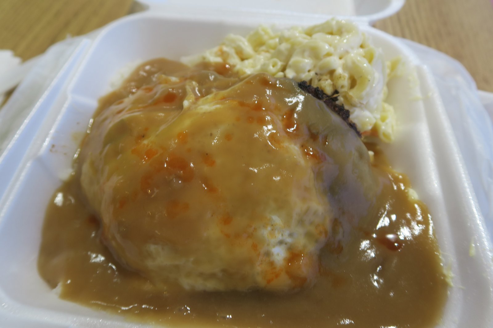 Of course we have to attend to the Mac Salad. This one was put together fine….all the minimum requirements and it was nice and cold. Lack of salt was an issue, but it was ok.