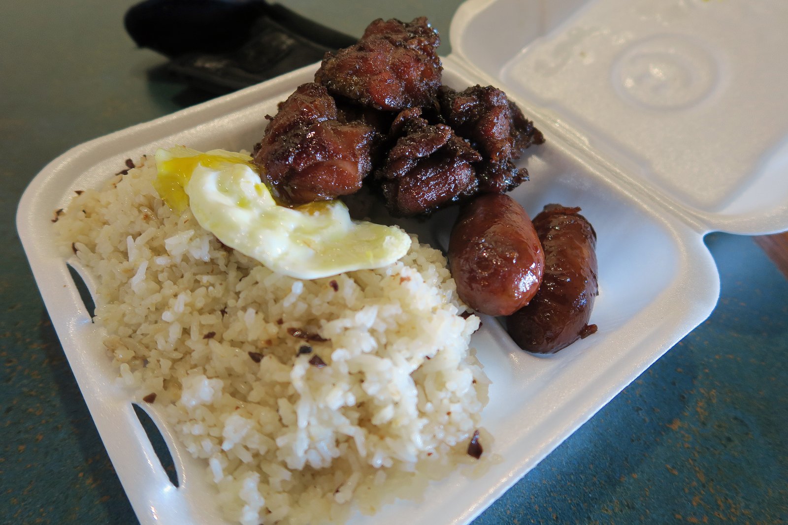 The woman working the counter was very friendly and the food looked decent….so I went with the Longanisa and Chicken Tocino….I had to stop her from piling on the garlic rice and still ended up with a load of carbs.