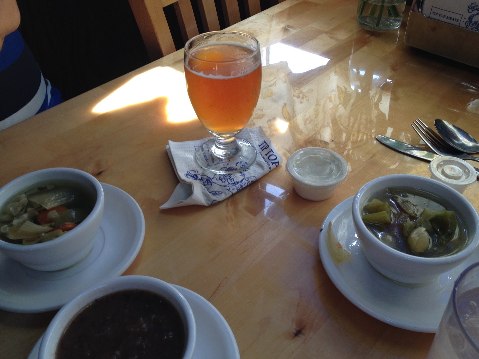 Each us did choose a soup (two vegetable soups and one oxtail soup, which is pretty much a rich gravy rather than soupy), The Mister had chosen a Steak and Stein meal- so that's his stein (it was a tangerine wheat beer).