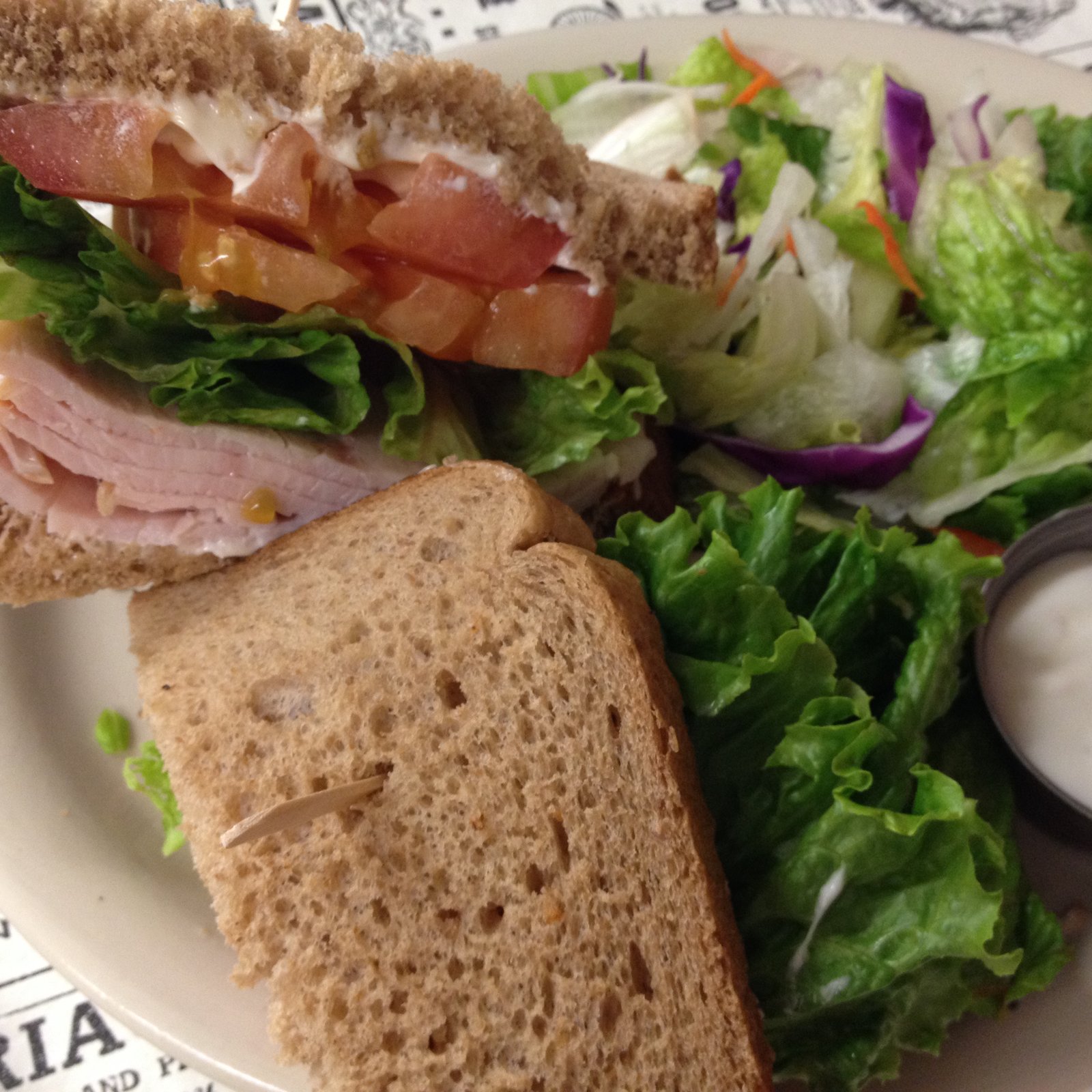 The fact that it comes with a full (not half) sandwich is great. Turkey- a lot of turkey, on very large slices of fresh, soft whole wheat with mayonnaise, lettuce and tomato. This was a wonderful meal.