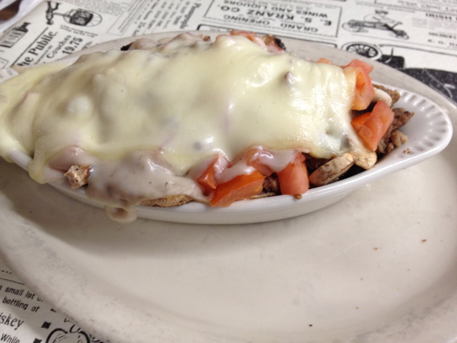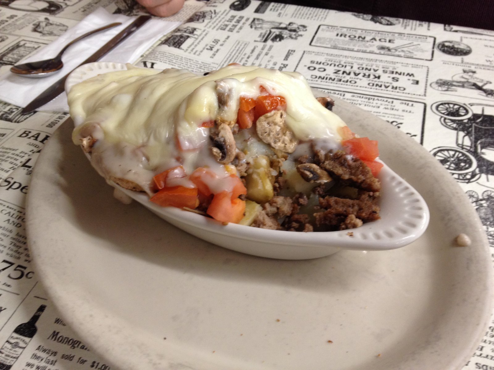 This is the Nebraska ($9.99) It's one of those Costco sized baked potatoes, chopped up and topped with ground beef, mushrooms, onion, tomato, Jack cheese and topped with a mushroom sauce. This is quite large, filling and easily could be shared or used as a side to share at the table.Here's some more of the eclectic indoor decor. Just about everything decorating the interior is for sale…this is good in case something strikes your fancy.