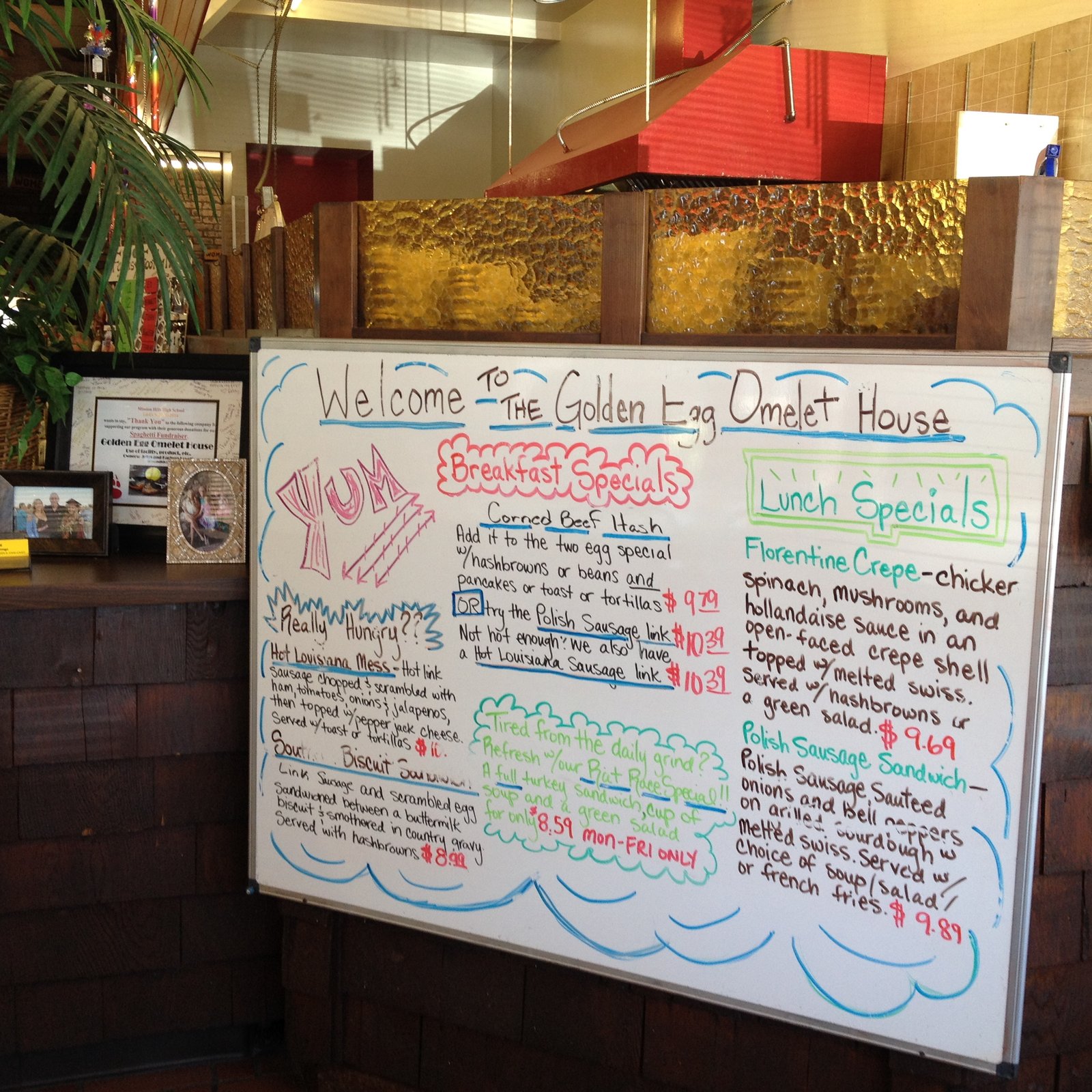 Golden Egg Omelet House 316 West Mission Avenue Escondido 92025 (760) 489-6420 Website open 7 a.m.-2:30 p.m., daily