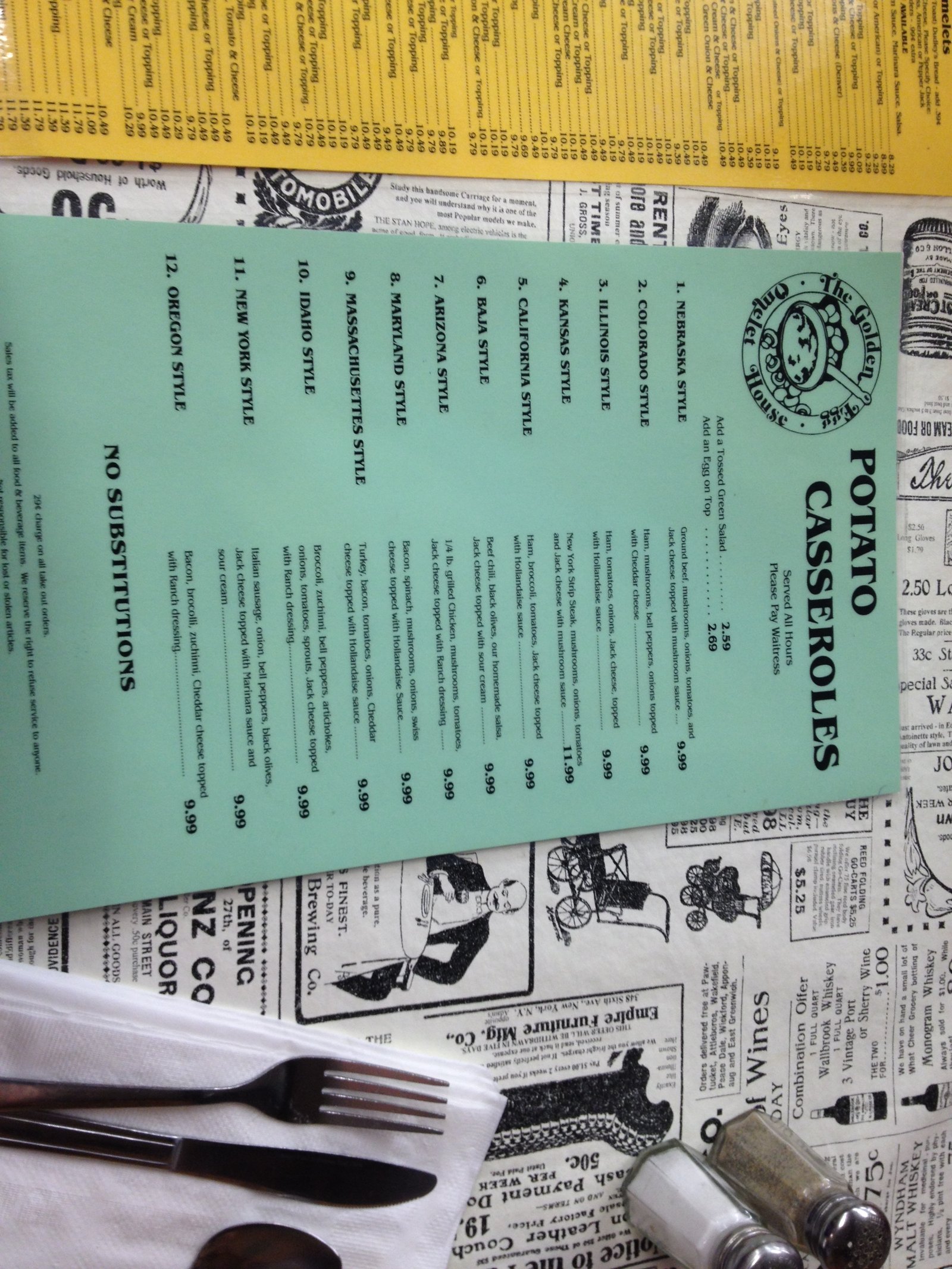 There is also a separate menu of just potato casseroles. A midwest favorite, sometimes referred to as Hotdish - all the components of a meal in a dish. Each casserole is named for a State.