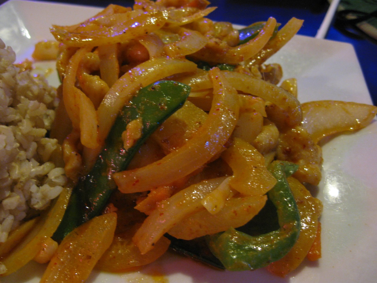 While the Thai curry chicken doesn't really remind me of an authentic Thai curry, it is nicely crunchy, very spicy, and curry flavored: