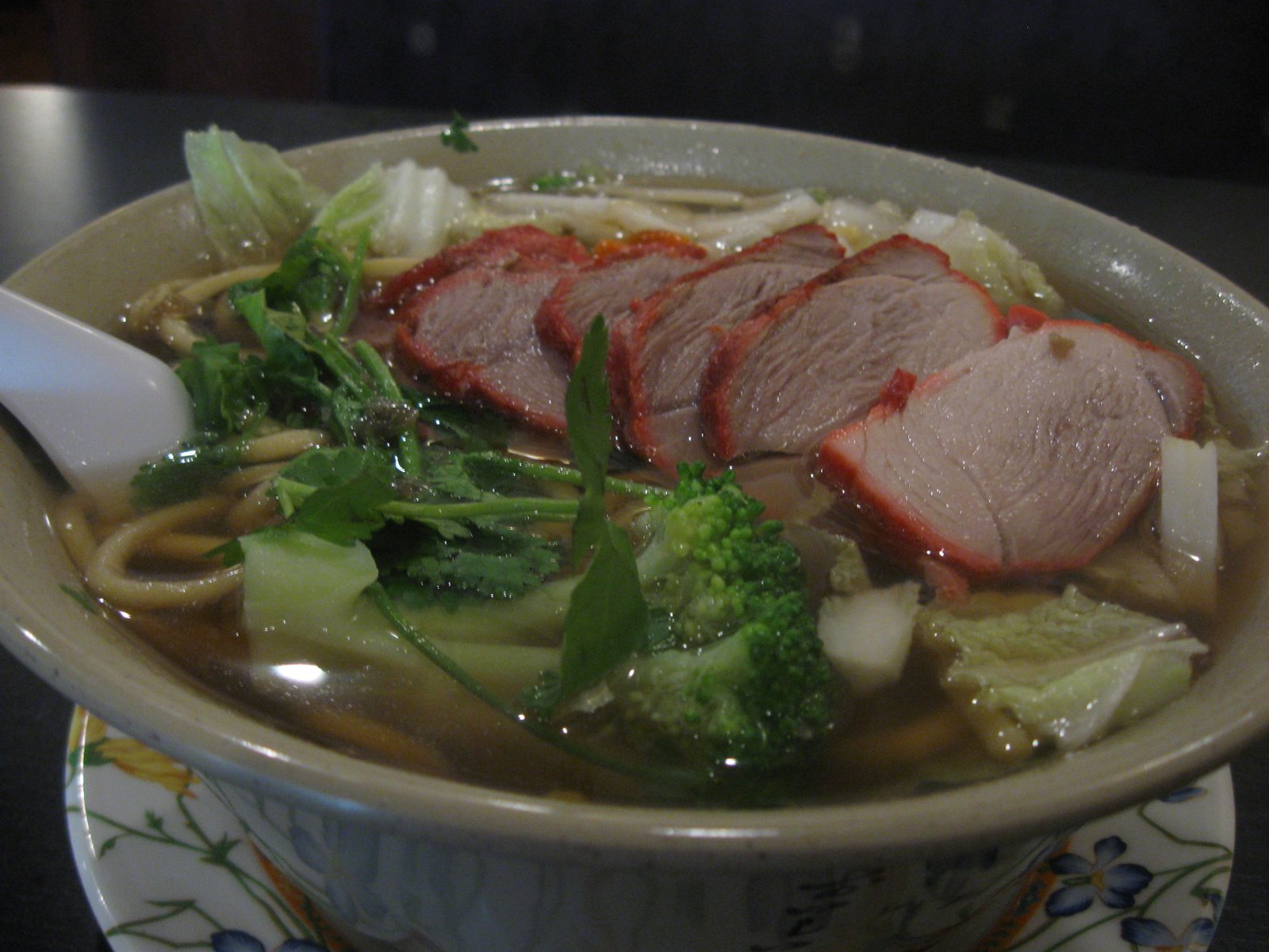 I like the broth, and the wontons and vegetables are fine. Sadly the char siu slices are dry and chewy, but this filling bowl of soup is only $.26 more than a lunch special.