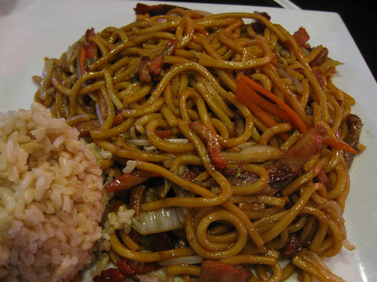 Even though I don't quite understand having rice alongside a noodle dish, YP offers some noodly specials. Here’s lo mein with pork: