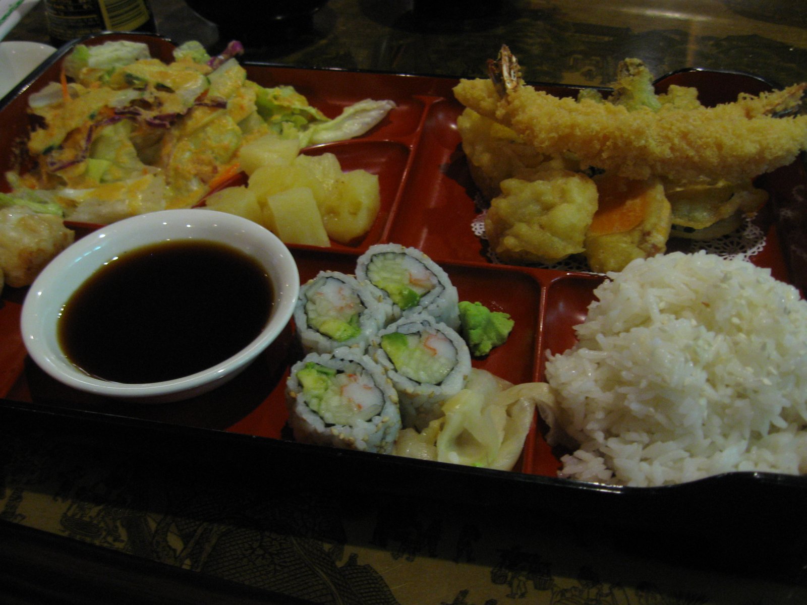 The sushi and sashimi lunch special looks okay, and would probably be fine if bathed in enough wasabi/soy sauce, but . . . (I am picky about sushi). Also a bit confusing for me putting this post together is that the online/to go menu isn't identical to the one in the restaurant. Not sure why that is.