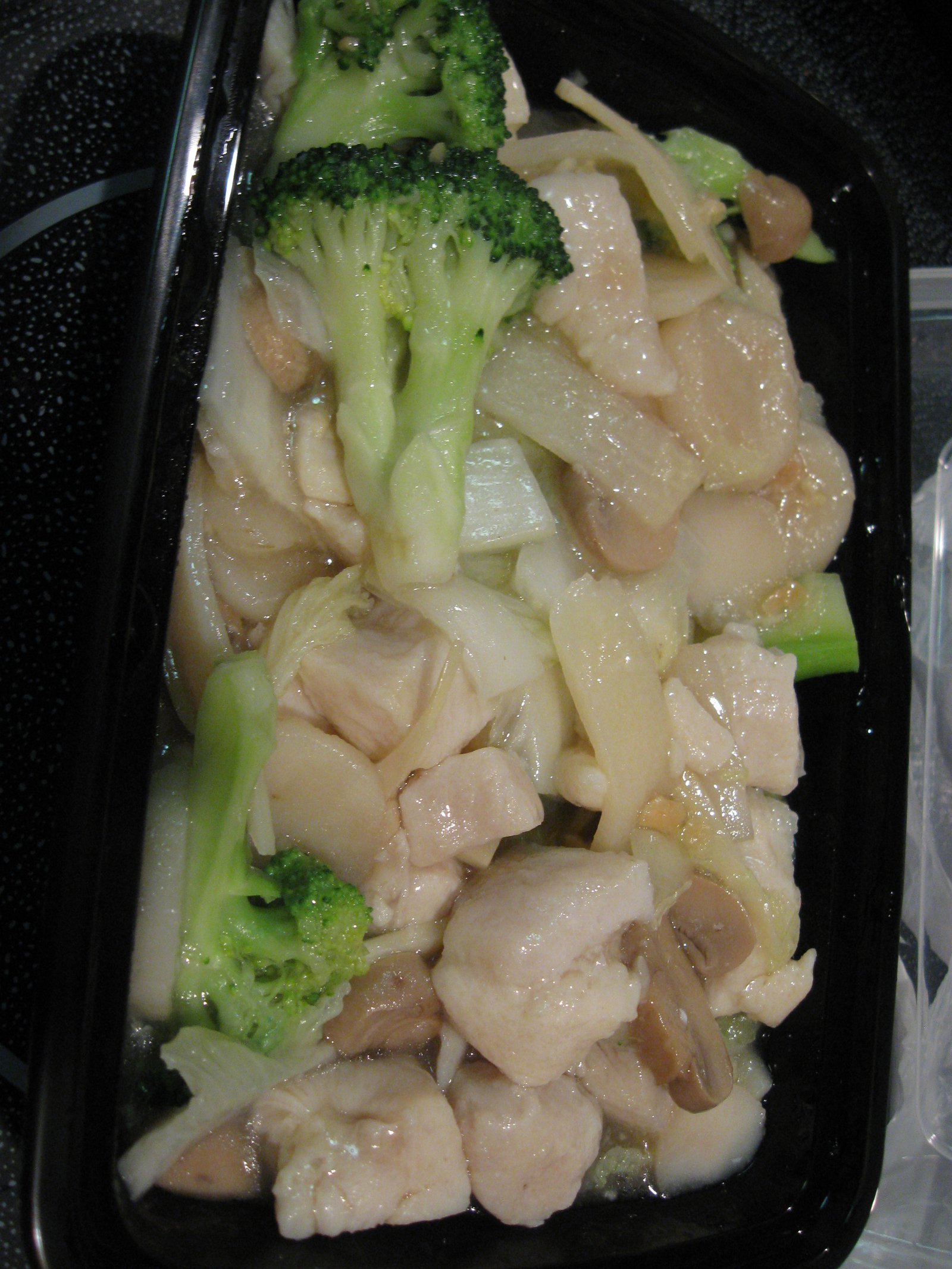 and a pretty boring moo goo gai pan (called mushroom chicken on the menu):