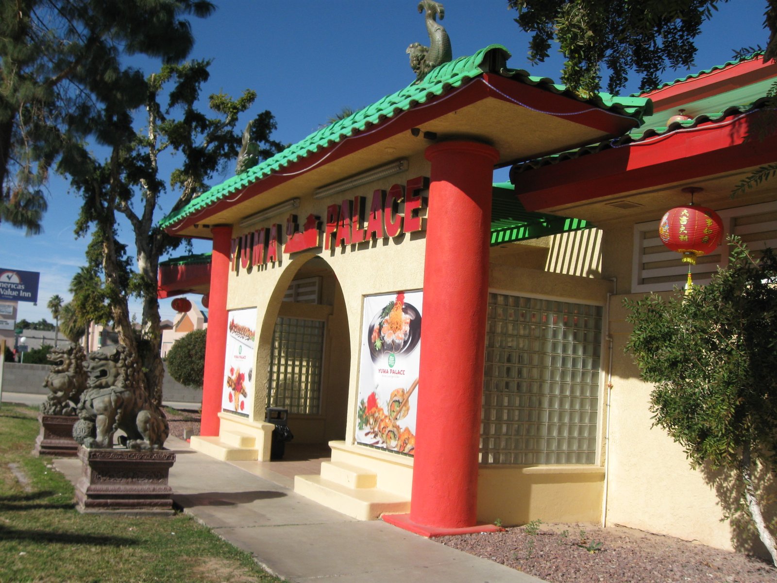 Therefore, finding edible sortof-Chinese food wherever I am living is important to me. Which is why this post focuses on two "Chinese" restaurants in Yuma. First, Yuma Palace: The last time I posted about this location, it was called Grand China, so it is still a large traditional Americanized Chinese restaurant space. This picture just shows part of the half of the restaurant where the current management seats people most days: