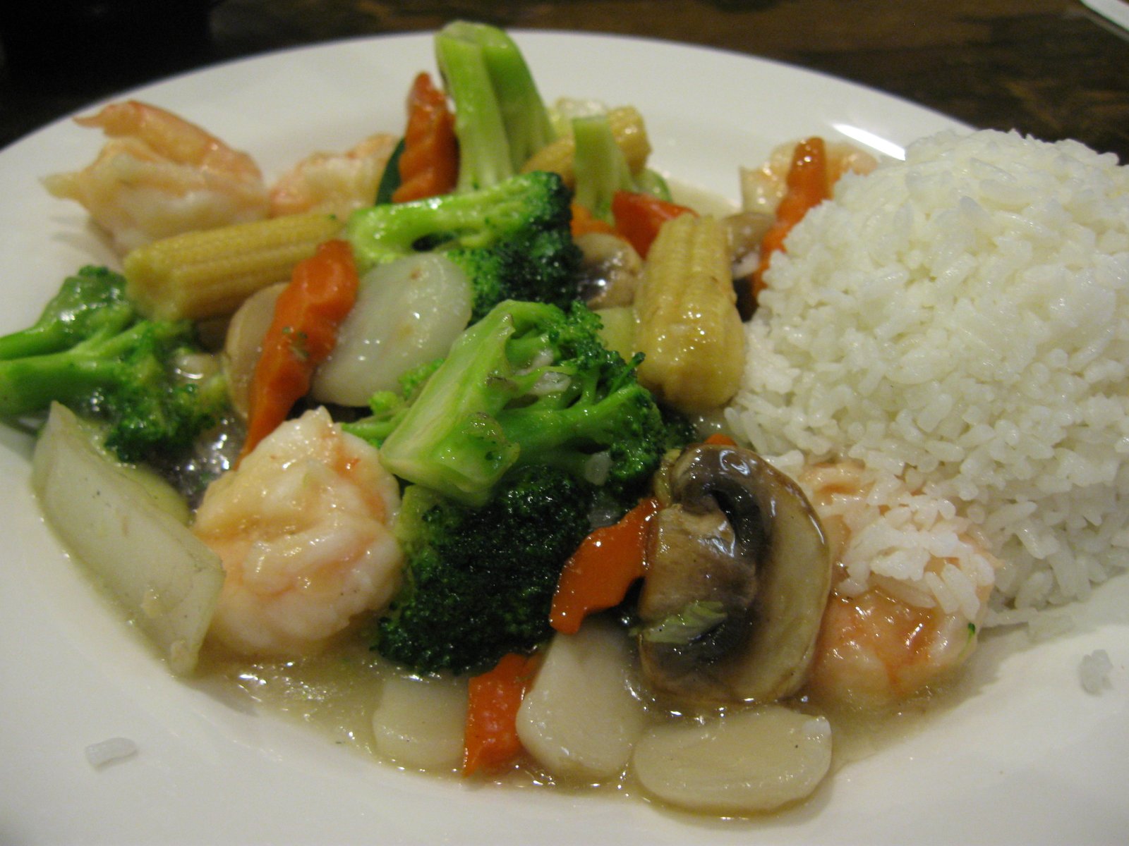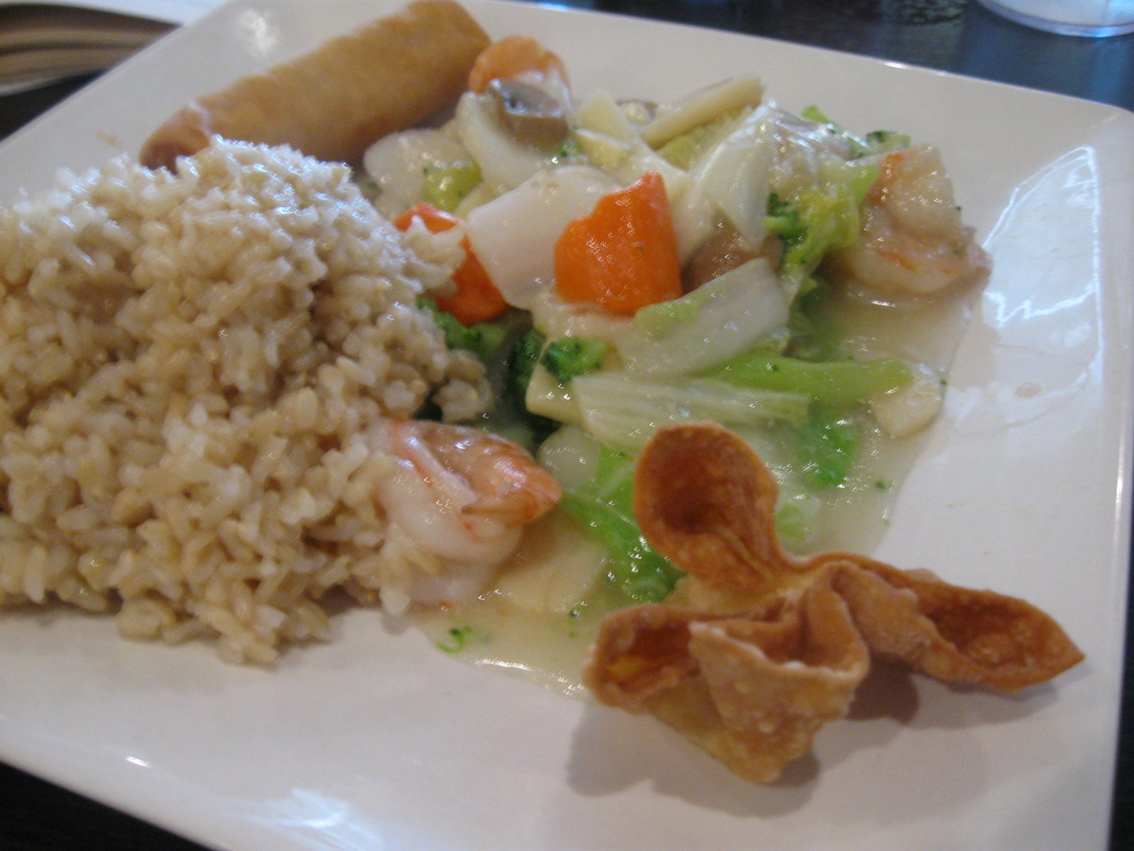 It's interesting to compare lunch specials from the two restaurants. Here is mix veg shrimp from Asian Gourmet: And rainbow shrimp from Yuma Palace: