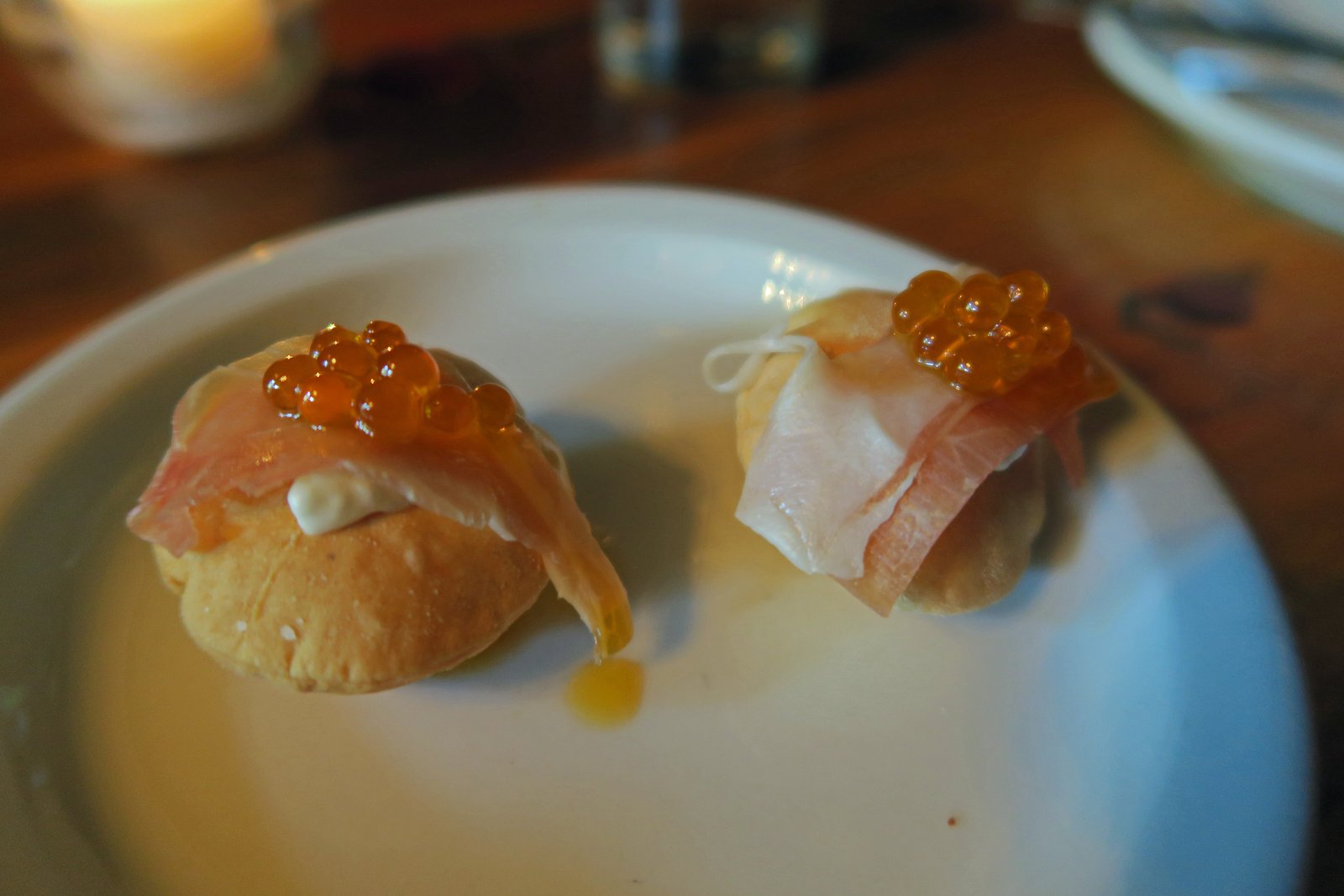 Had we not been to Disfrutar a few months before, this El Bulli inspired, olive flavored spheres would have impressed us a bit more. As it stood, we found this to be quite mild in flavor, not quite the stunning bite we expected.