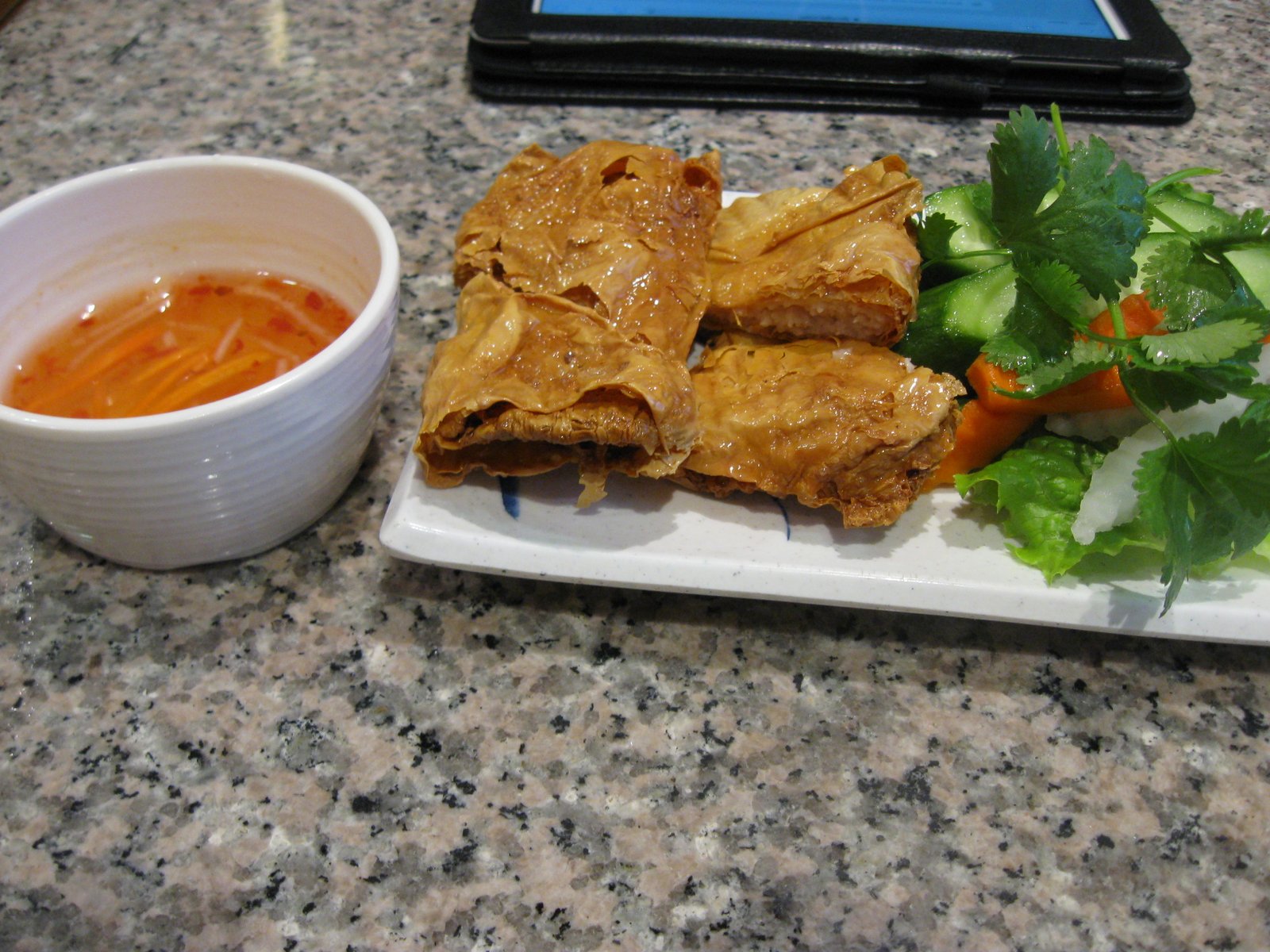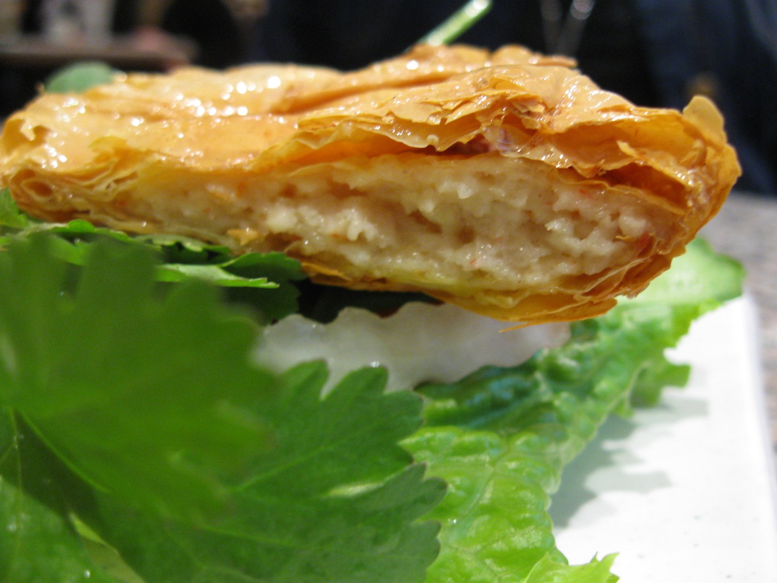 It was really good. Crunchy fried tofu skin, mild dipping sauce, and seafoody interior: