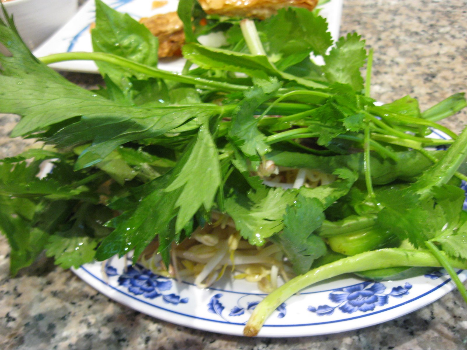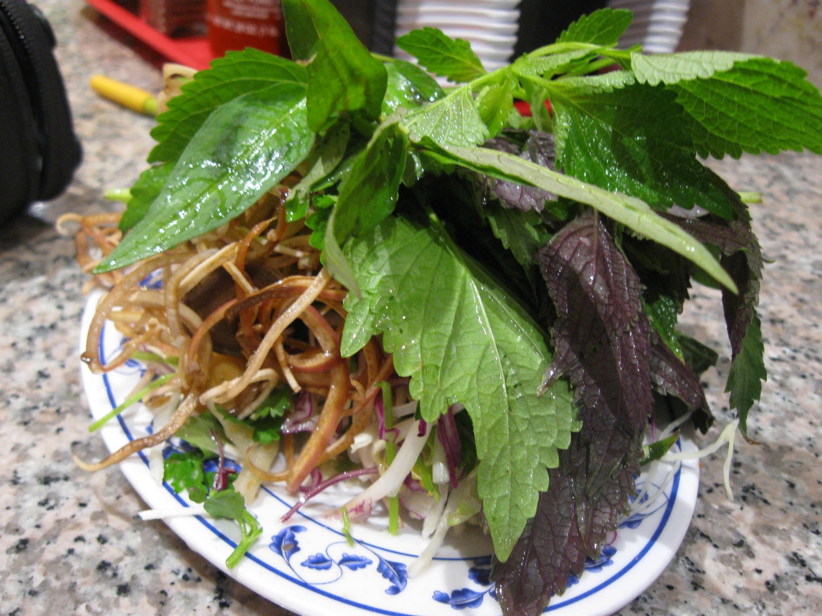 On the positive side, look at the abundant rau thom; that's a huge portion of herbs and vegetables, all fresh and tasty: