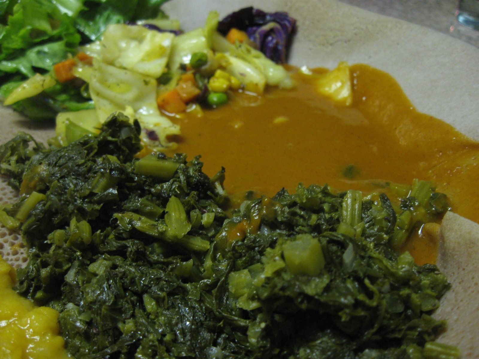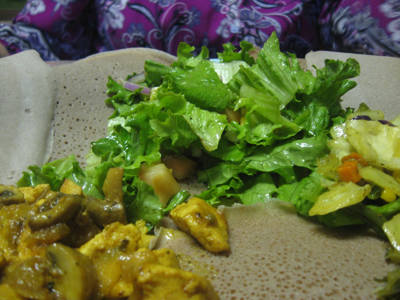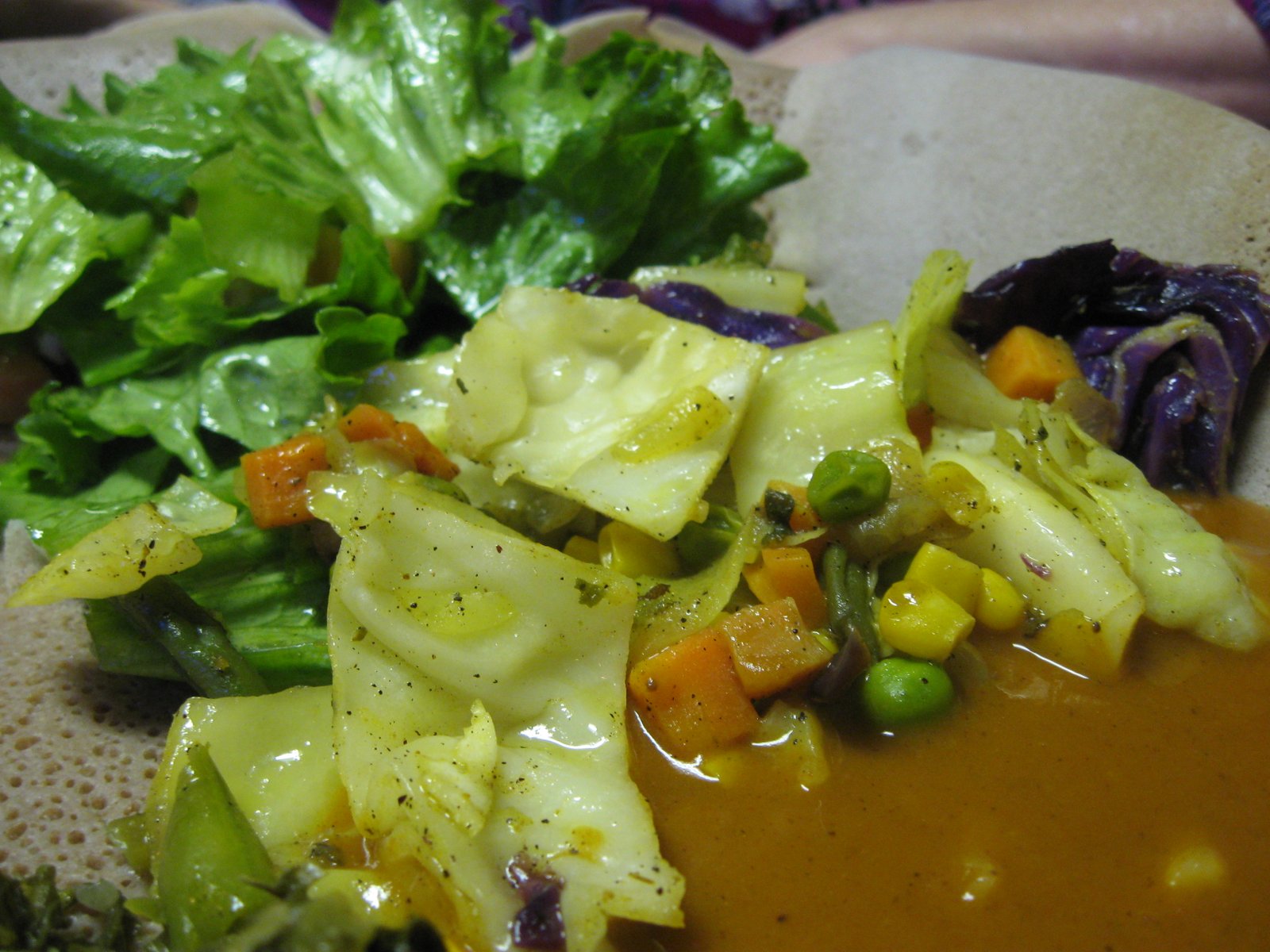 As expected, the meal arrived covering a large thin injera pancake, which had a pleasant touch of sour tang.
