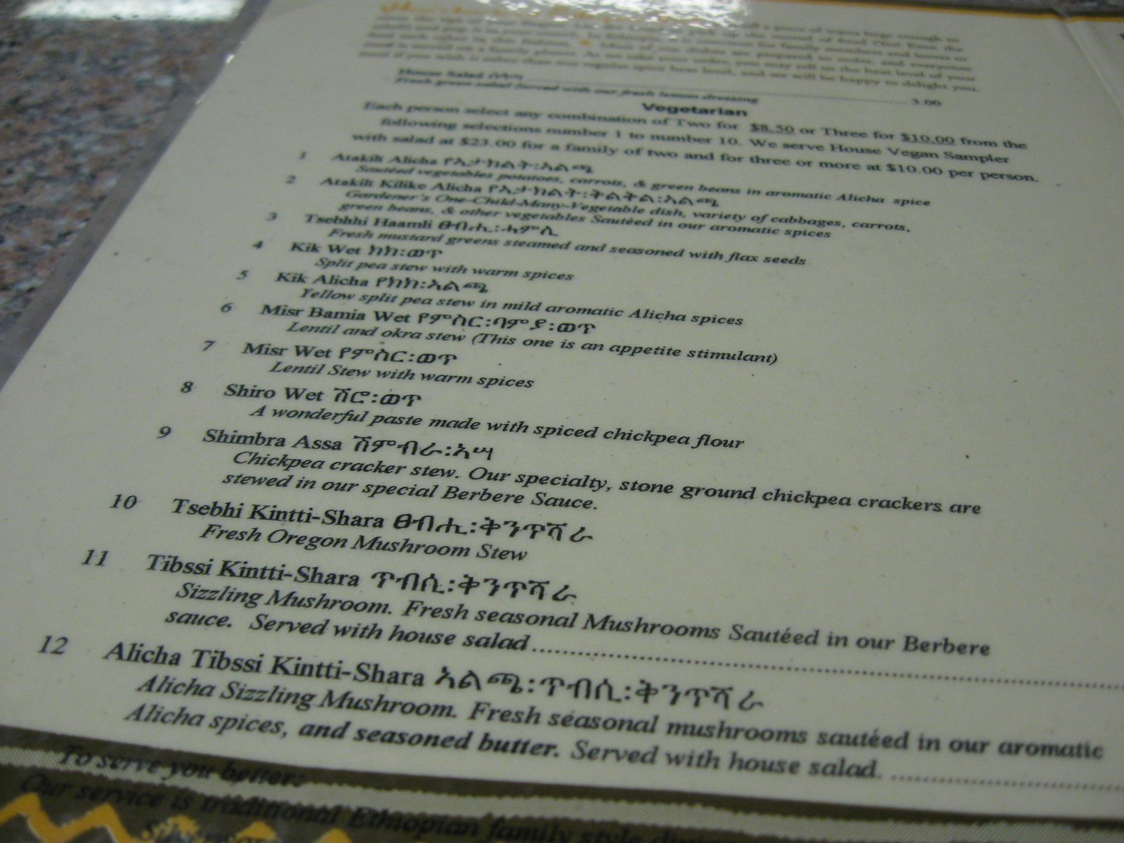 I really wish that we had been able to visit this restaurant several times and try some entrées that I don't recall seeing in San Diego Ethiopian restaurants, like fish stew, chickpea cracker stew, lentils and okra, etc.