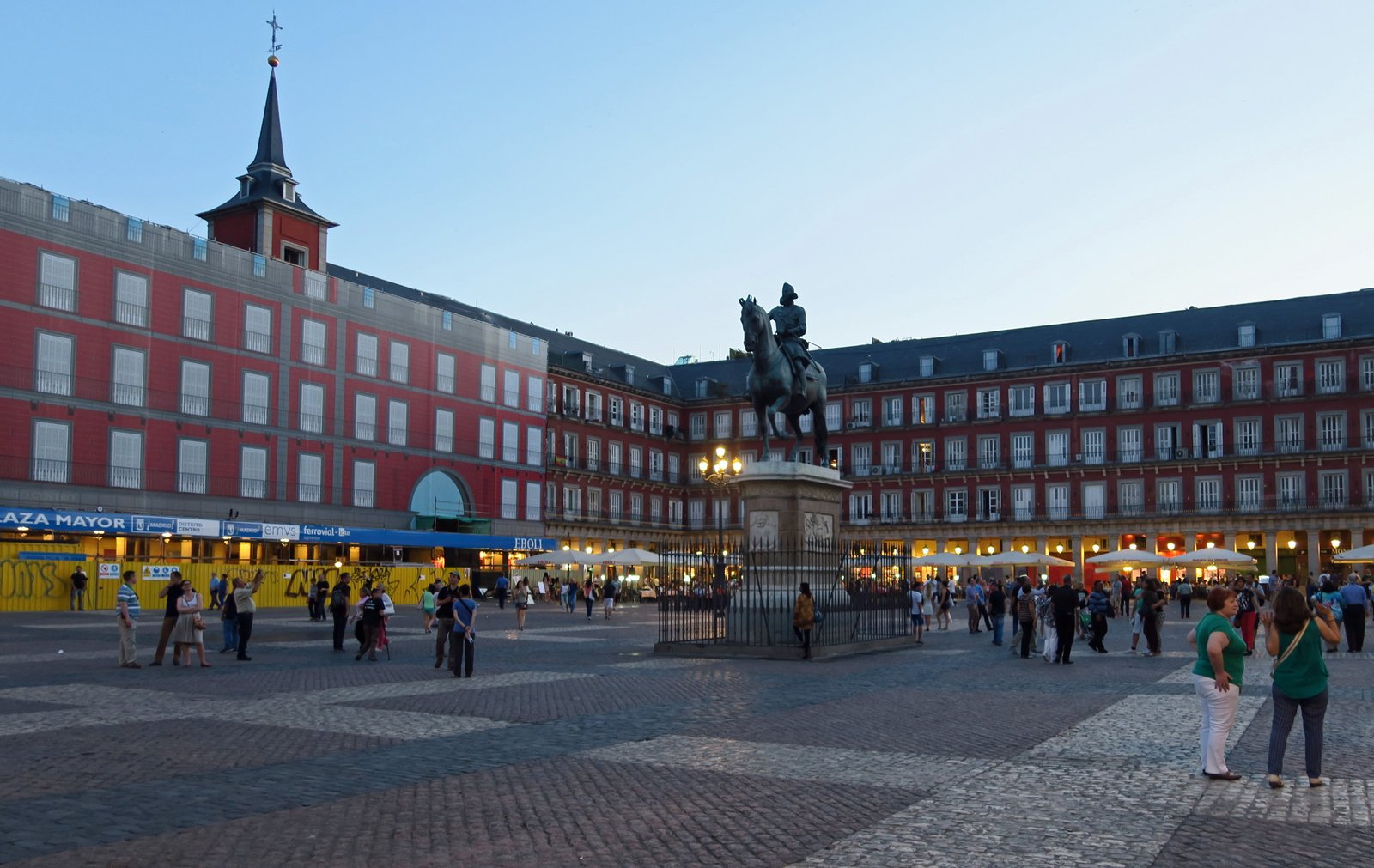 As I noted in an earlier post, the Missus really wanted a photo of the Tio Pepe sign at night. Well, it was dusk (845pm) and still a bit too early, so we had some time to kill. So we made a loop back to Plaza Mayor.