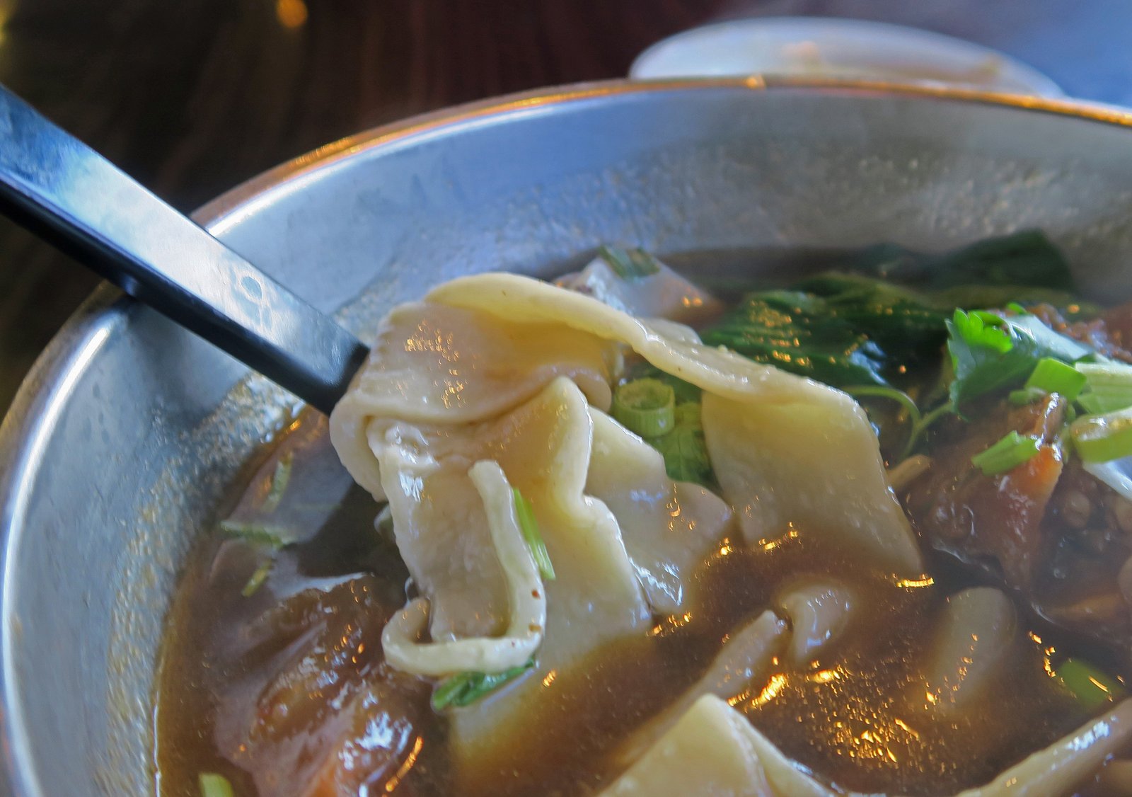 First off, there were some decent things about this bowl….first and foremost no bleach flavor. Second, the broth was super hot. Third, that piece of tendon was excellent, holding shape but tender bordering on buttery. The broth had decent richness and the flavor of the preserved vegetable came through, but was pretty one dimensional in terms of overall flavor, low anise, lacking in beefiness, and way too much MSG. The beef was cold in the center and tasted a bit like it had been held in the fridge too long. I should have learned my lesson about the noodles and gone with the regular version. The Lapian noodles were hard and pretty much just tore to pieces when grabbing them with chopsticks.