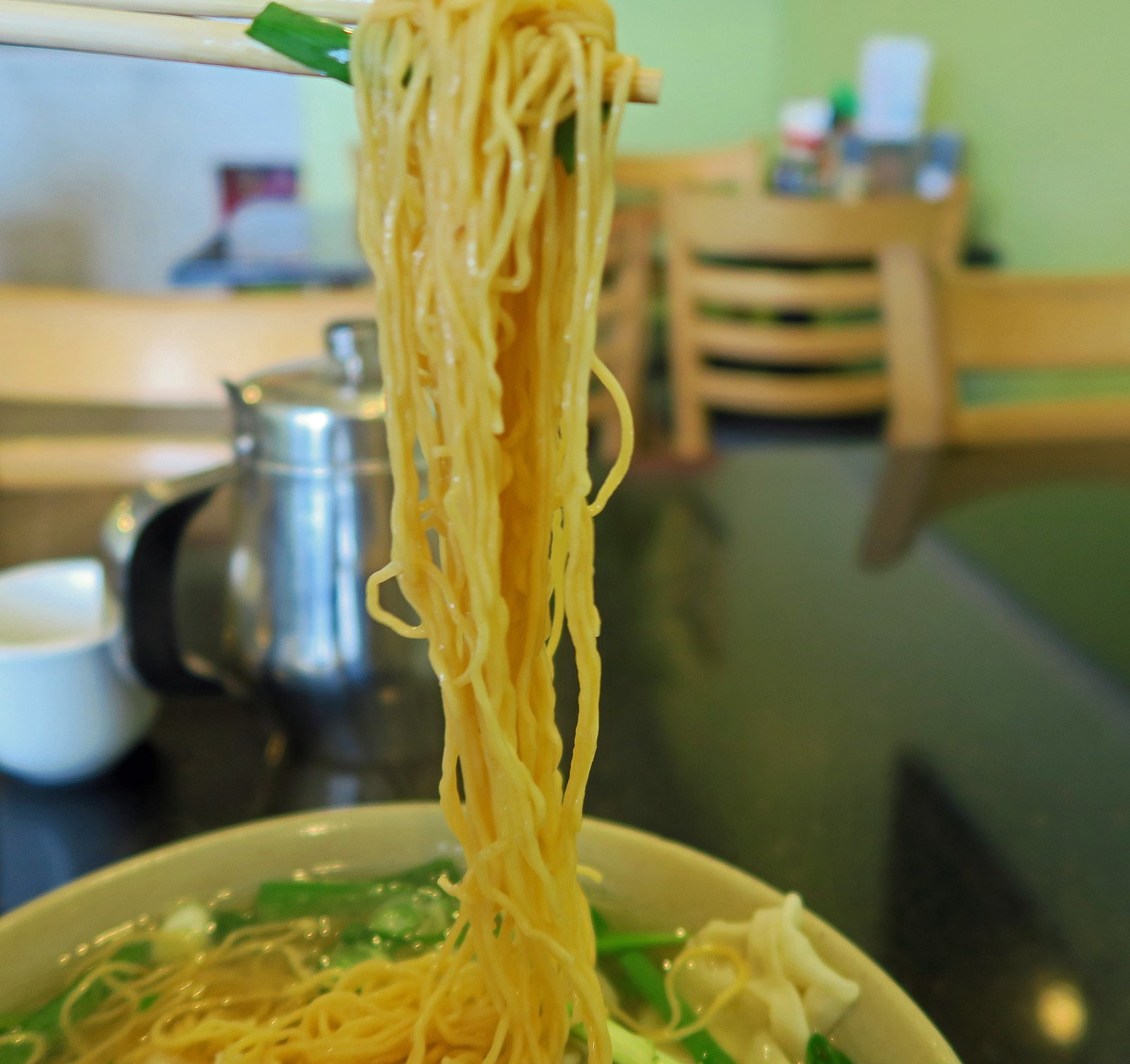 This was pretty good, Better than what I had the last time around. The broth was light, pork-chicken, with just a touch of oil, savory, and not overly salty this time around. The charsiu was on the bland side and the two won tons were on the tough side, the 4 dumplings were also kind of chewy. The egg noodles were quite nice, good chew. Nice and simple, a nice breakfast. This got me wondering if this might be better than the version at Minh Ky.