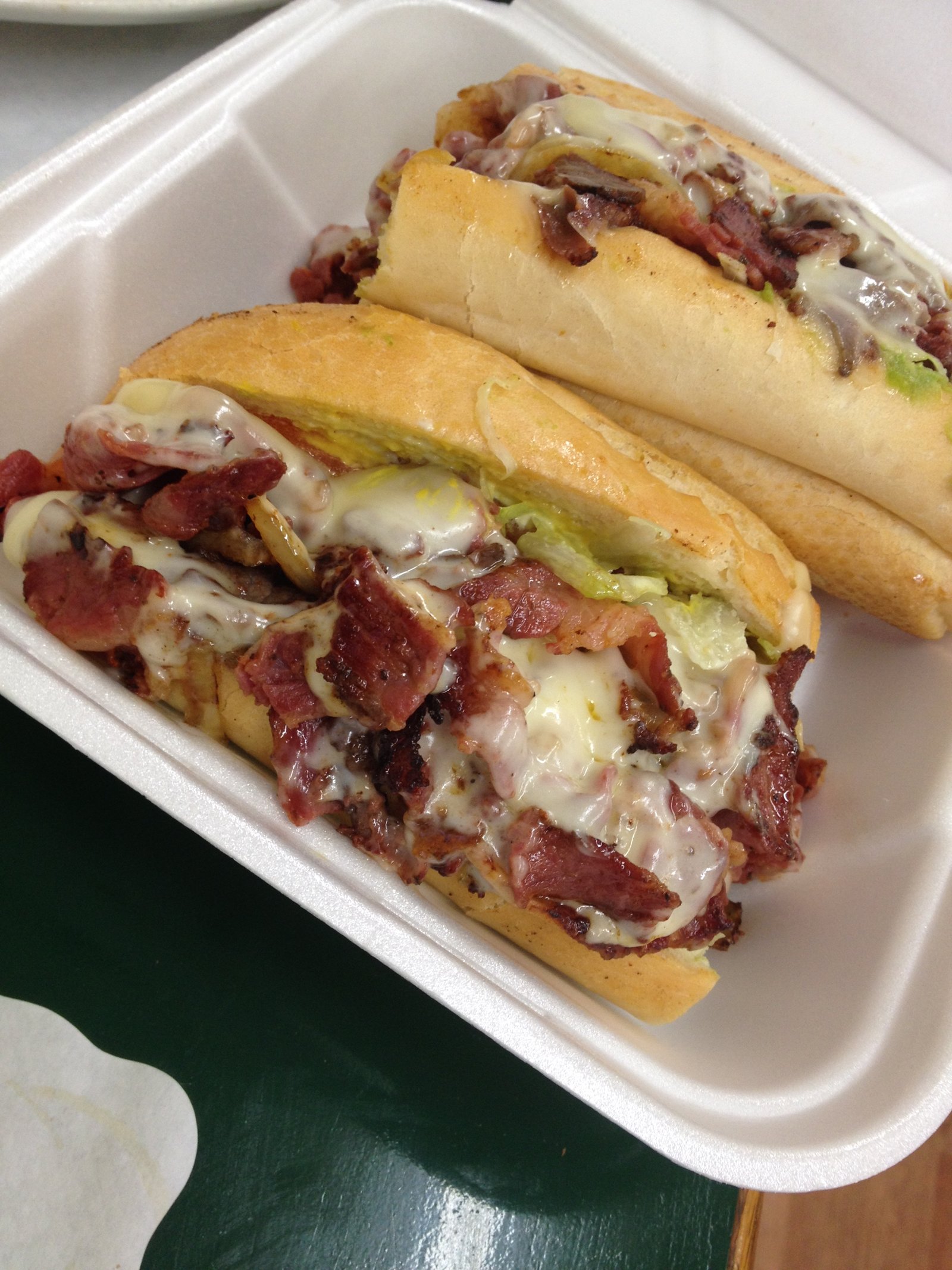 Since there is an easy way to order online, I've done it a few times. The "Famous Pastrami" ($8.50) is large enough for two. The bread is grilled, there's a choice of cheese and a choice of ingredients. 8 ounces of meat. Really good sandwiches here.