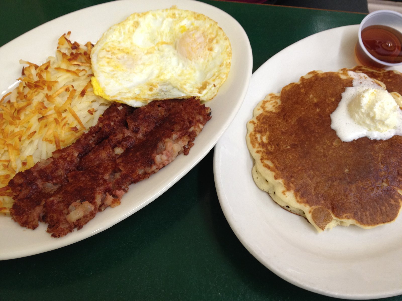 The corned beef hash and eggs ($8.99) is always a good choice. Two eggs, a choice of home fries or hash browns, and a choice of toast, biscuit and gravy or pancakes are al part of the meal. The corned beef hash is very good and not too salty.
