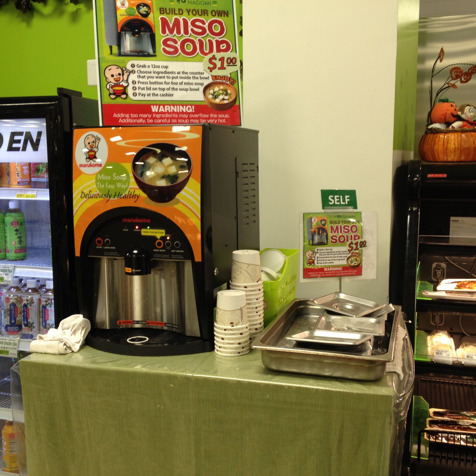 There is also this fascinating machine (which wasn't working the last two times I was there) that has push button ease (and toppings on the pans to the right) for some instant miso.