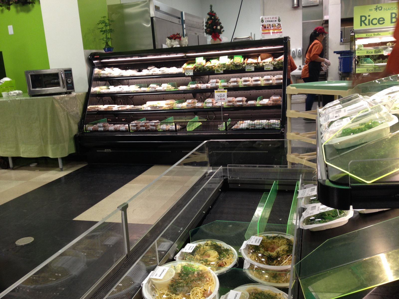 Eventually there was a day when The Mister could join me and we stepped inside the Marketplace. On the right side there are prepared boxes of meals, along with a microwave if you plan on eating in the food court after paying. There are also two islands of prepared meals and desserts.