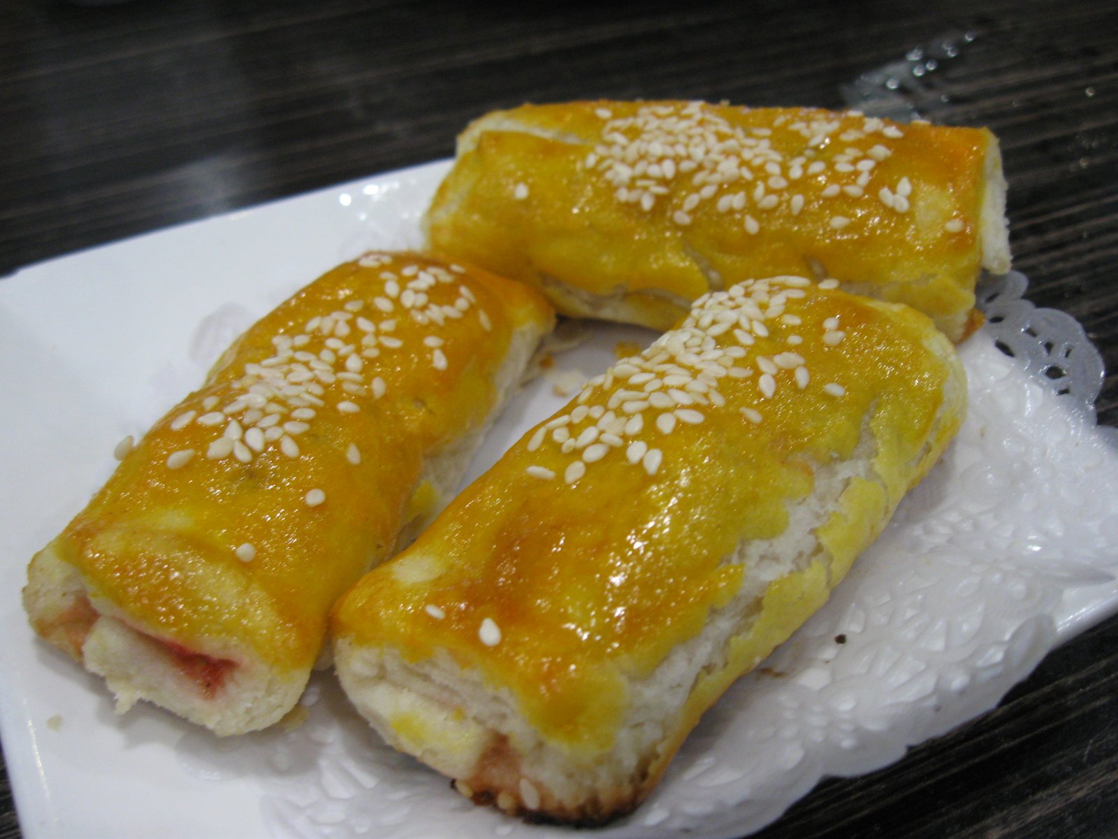 Baked barbecue pork buns are an old favorite of mine, slightly sweet and done well here I thought. More bbq pork than in the tarts: