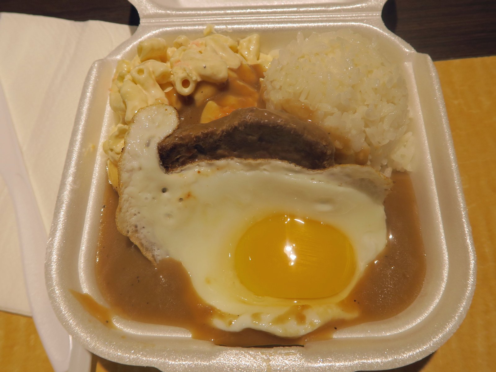 There were two things positive about this loco; the egg which was nicely sunny-side up and the mac salad, which wasn't messed with too much; had the perfect amount of mayo and was ice cold. Other than that, this wasn't very good. The gravy was pasty and had no flavor, the rice was dry, some of which was hard. Worse of all was the train wreck called a hamburger patty, which was some leathery substance that I took a bite of, then put to the side. Also….no Tabasco…..