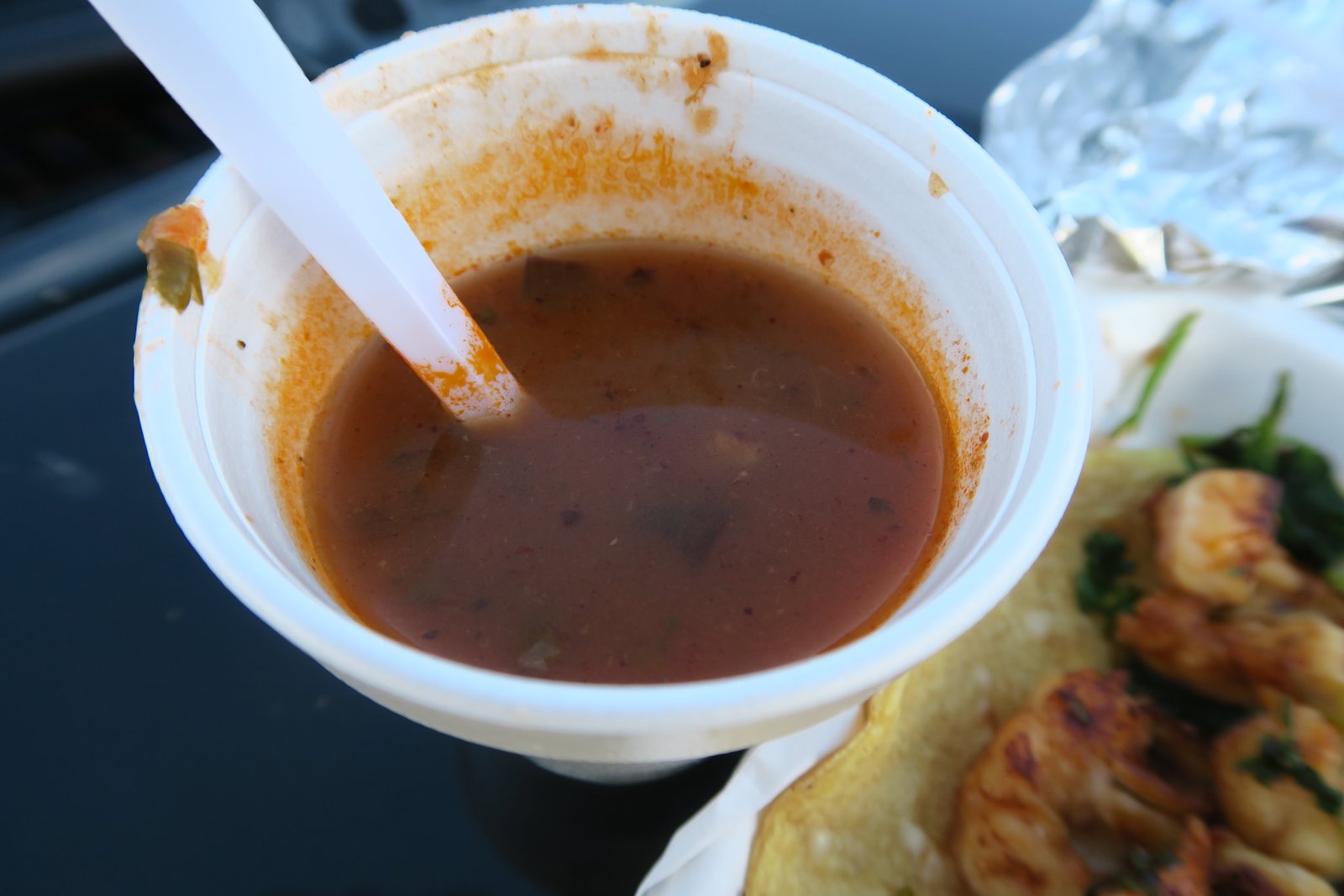 It had a nice amount of plump shrimp, but was missing the right complement of griddled onions and peppers which add flavor and balance to the taco. There also wasn't enough cheese melted on the tortilla, an important touch which keeps it from breaking apart. It wasn't bad, just not at the level I'd expect from El Pescador. Overall, I still prefer the versions with tomato in it as it adds a nice touch of acid.