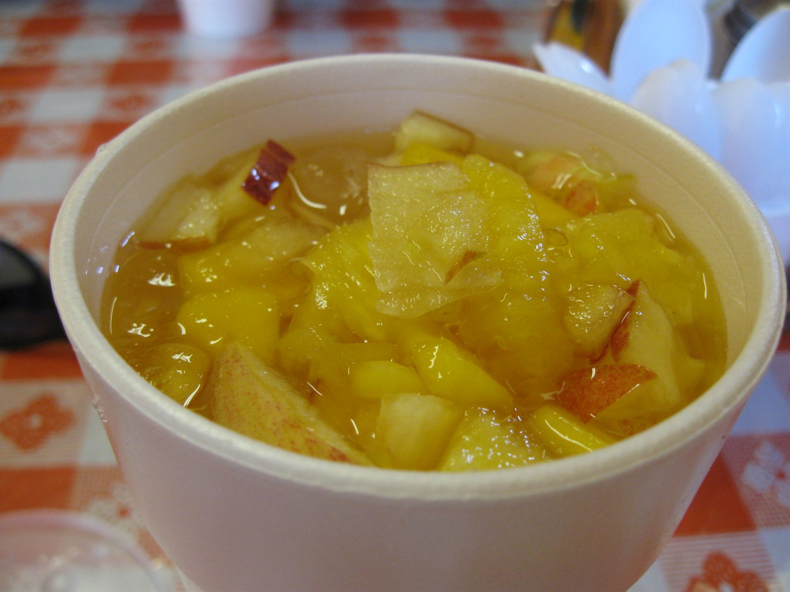 The aguasfrescas ensalada are still very sweet and chocked full of fruit: