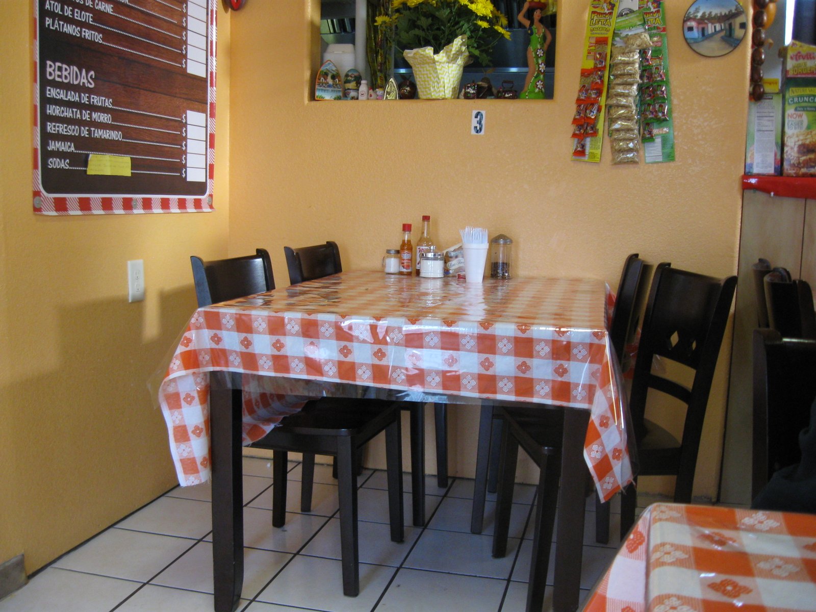 The interior space is very small, but clean and bright. There are only four tables; here’s one: