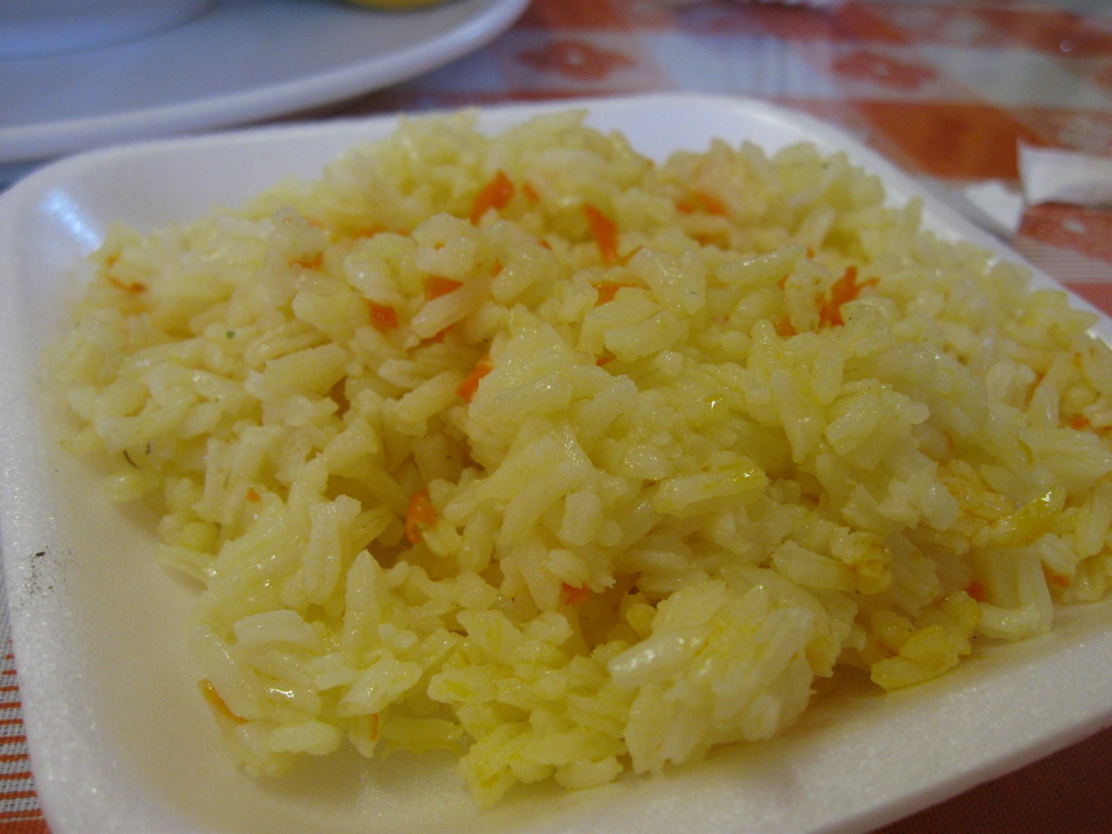 The soup came with colorful rice
