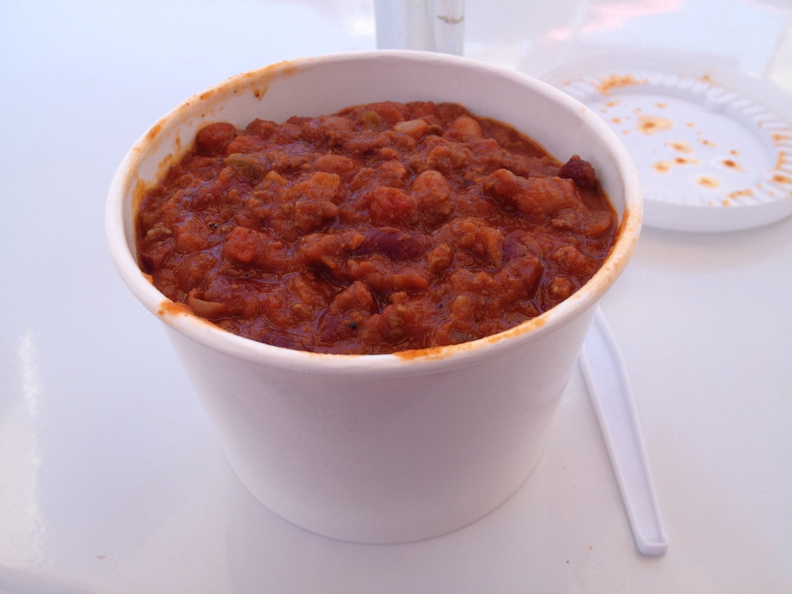 Beef Chili, $3.99. It is made with pinto and kidney beans, bell peppers and onion. The coarse grind of beef is plentiful and the chili heat is wonderful; the flavors are melded very well. This is a large serving size (at least two cups/a pint) and I took home leftovers, which were even better the next morning on top of scrambled eggs.