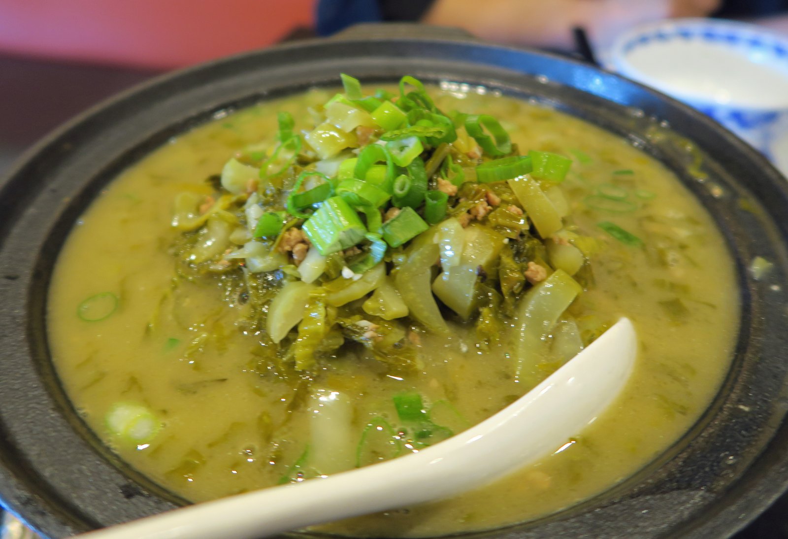 We tried a couple of the newer dishes like the "Green Vegetable Cooked the Old Way", which, in spite of the preserved vegetables was very bland, and the Intestines with Chilies and Bamboo Flavor, which tasted really good, but I'd have preferred the intestines being a bit more crisp.