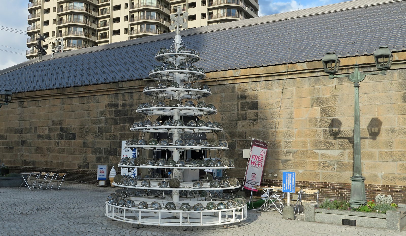 At the intersection right before the canal stands what I was told is Hokkaido's Oldest Standing Commercial Warehouse, built in 1893, which now houses the Tourist Information Office, some souvenir shops, and a pretty interesting "Christmas Tree" made out of glass floats.