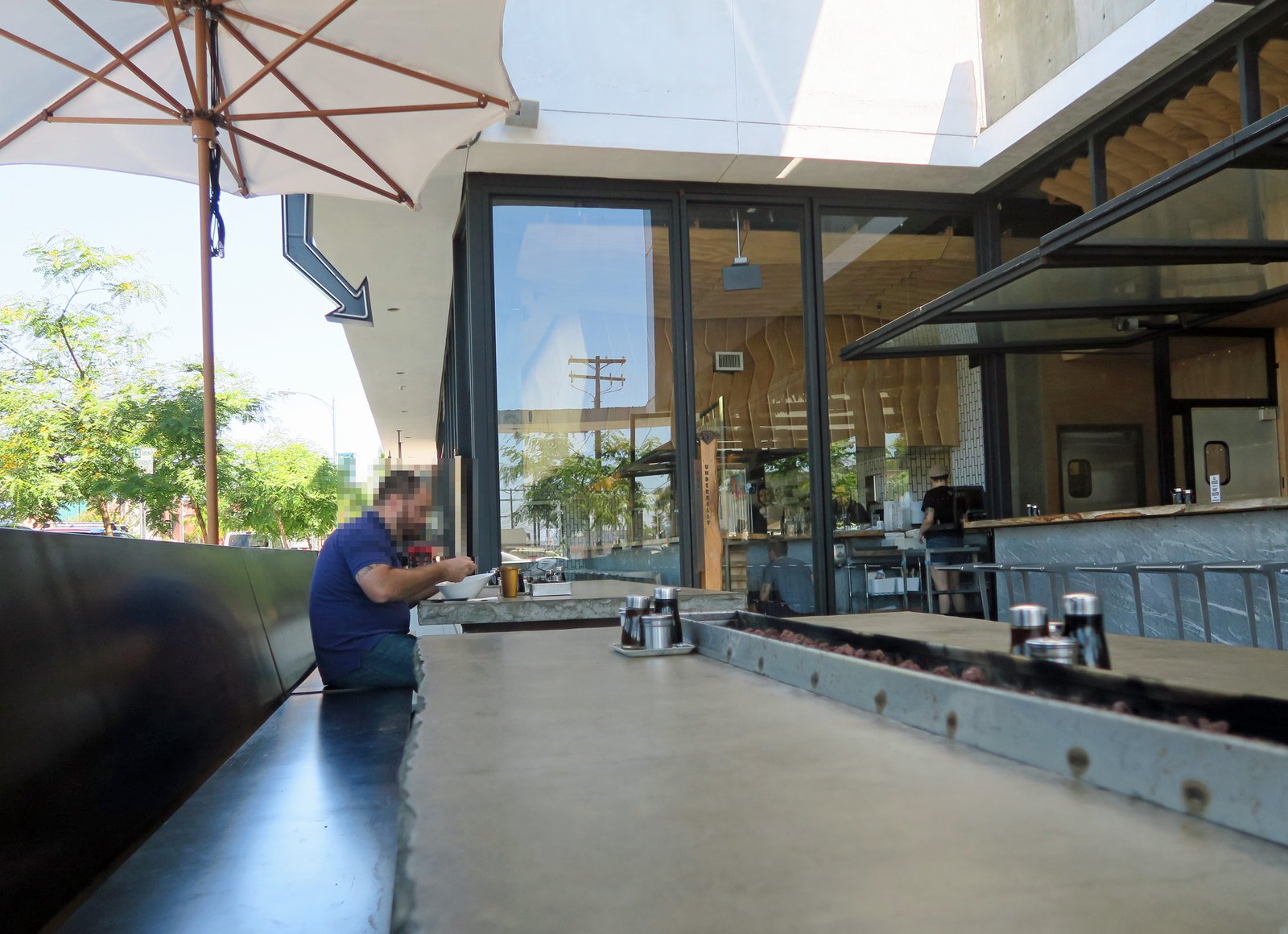 Being right around the corner from Tacos Perla and right next to Modern Times Flavordome I'd passed the place enough times. Same drill as the Little Italy location, order at the counter, grab a seat at the table. I do like the lay-out; though I tend to think of ramen as being something for milder, cooler weather; all this outdoor type seating seems to be taking quite a different tangent. Still, really nice counter folks, the guy who brought me my drink was also great.