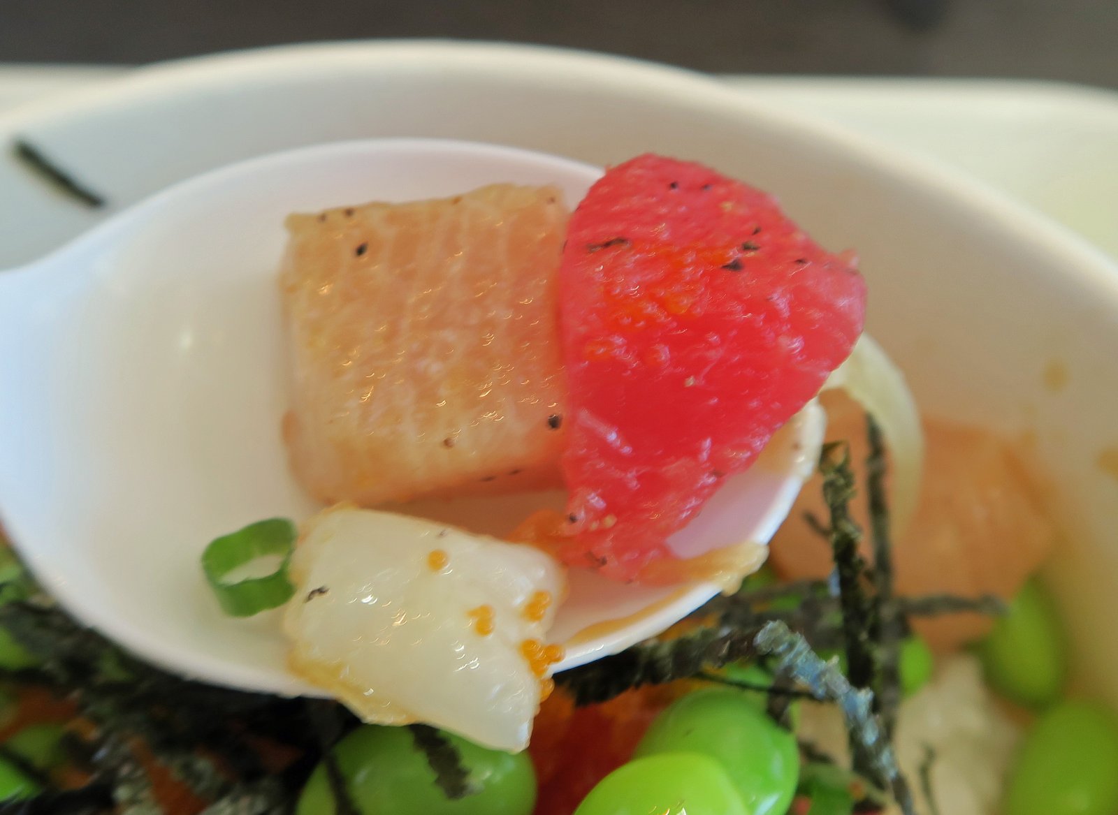 Funny thing; I had a chat with Tommy from Catalina Offshore about all these poke places recently. He's decided not to do business with them, basically because it seems to be a "reverse arms race to see who can get away with serving the cheapest product possible." He also asked me if I was "insulted at the low quality and how they're defiling such a great food item that I have ties to." I told him that right now, I'd just be happy if they spelled "poke" correctly.